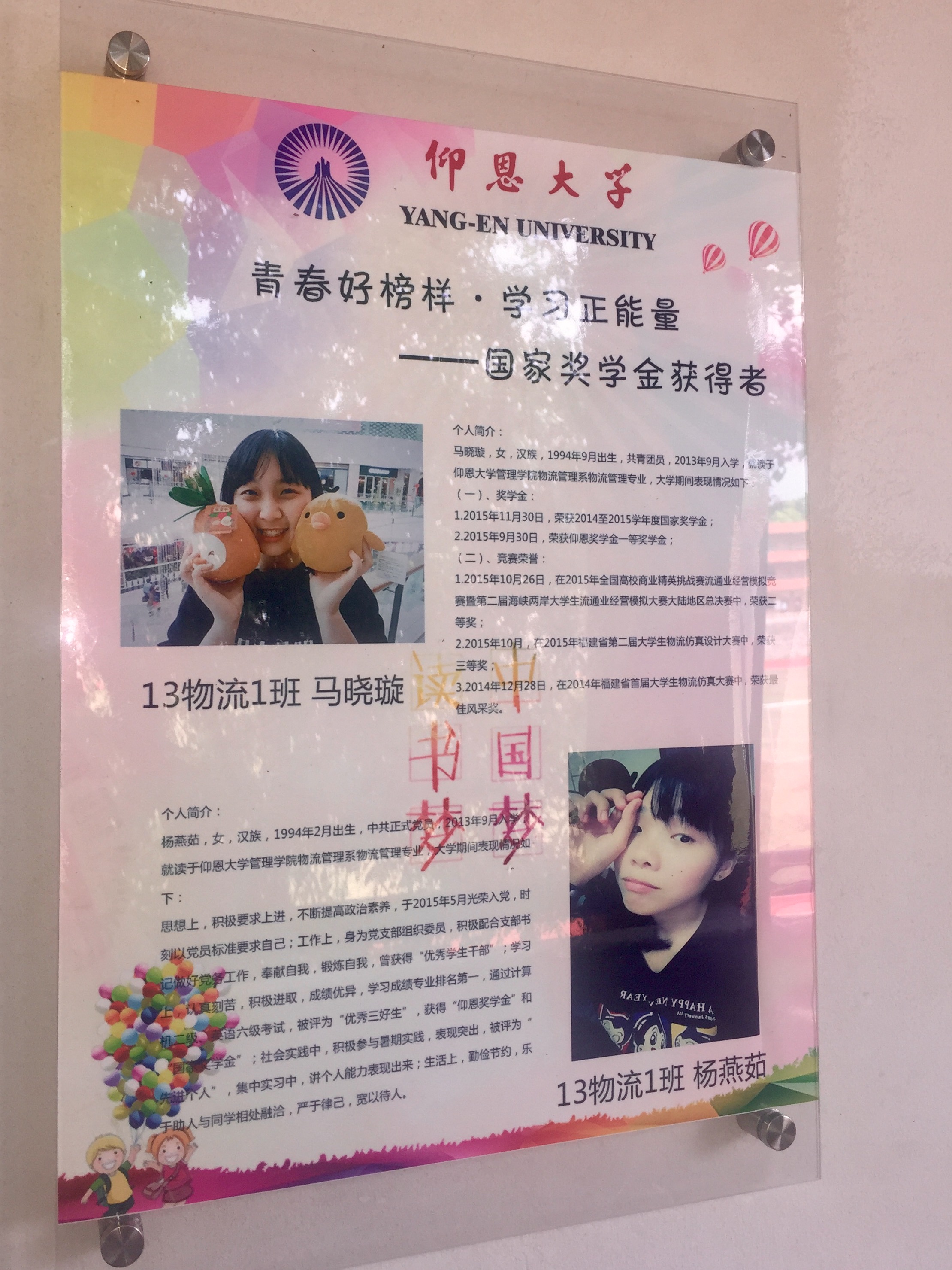 文化走廊展示的内容丰富,形式多样,不仅有习近平总书记的系列讲话、学院专业介绍,还有优秀校友风采、青春好榜样、名人名言等。