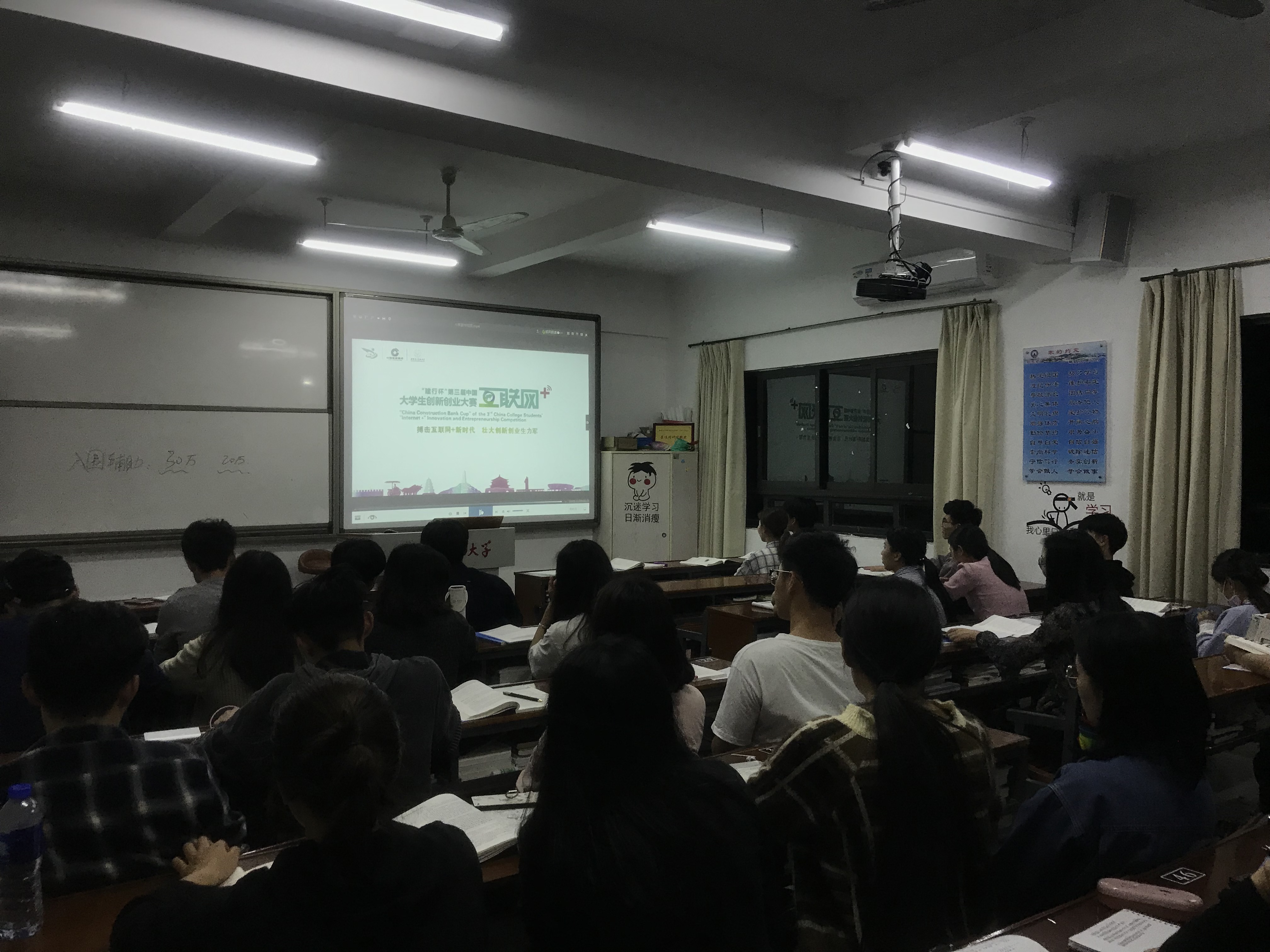 同学们在认真观看视频 据悉,在本次动员班会结束后,同学们参赛热情高涨,近400名同学组成约80支队伍参加了本次“互联网+”大赛。中国“互联网+”大学生创新创业大赛是我国深化创新创业教育改革的重要载体和平台,大赛为大学生实现创新创业梦想打开了一扇美丽的天窗。开云重在把大赛作为深化创新创业教育改革的重要抓手,引导学生主动服务创新驱动发展战略,积极开展教学改革探索,把创新创业教育融入人才培养,切实提高开云学生的创新精神、创业意识和创新创业能力。