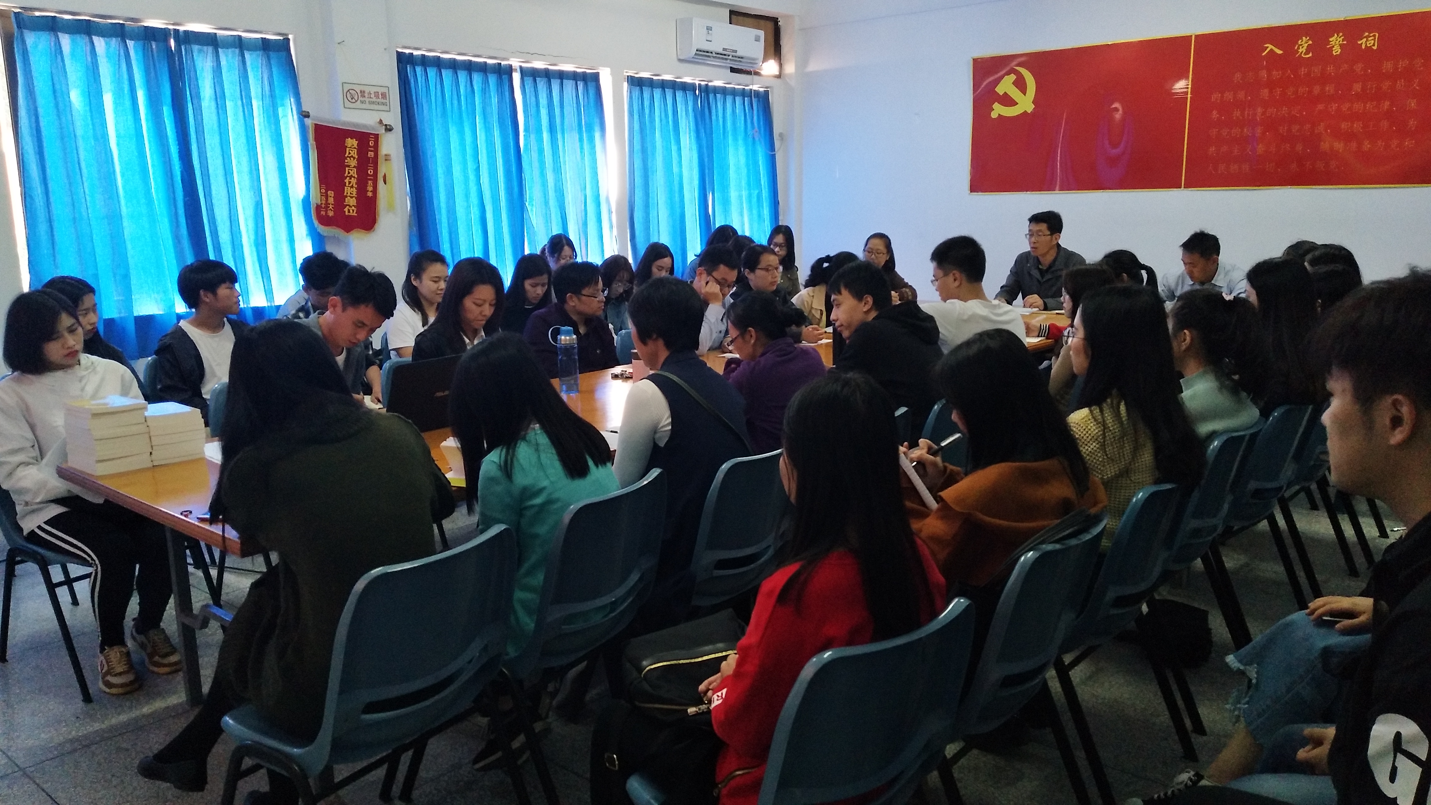 为进一步深入学习贯彻党的十九大精神,增强广大师生党员对十九大精神和十九届三中全会精神的全面领悟,4月18日下午,开云kaiyun官方网站党总支在曼谷楼206会议室召开全院师生党员大会。开云kaiyun官方网站党总支支委、教工党支部全体教师党员、全体辅导员以及各学生党支部全体在校生党员参加了此次大会。会议由党总支书记许惠铭主持。