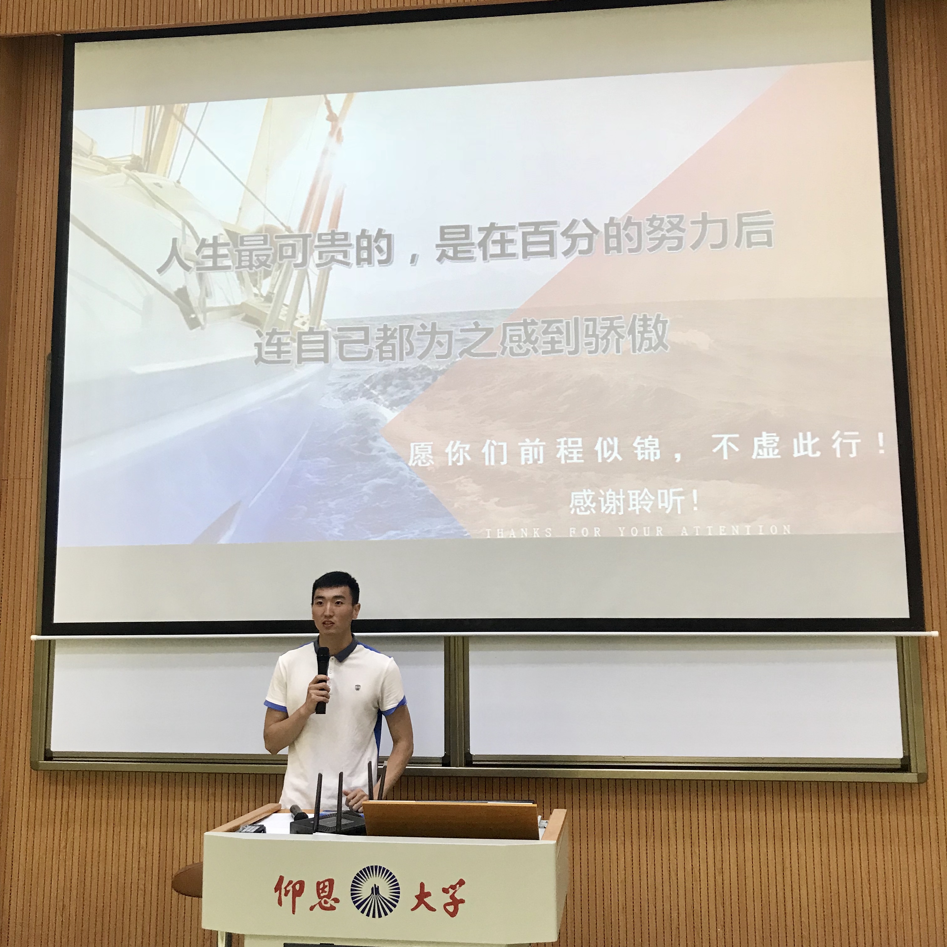 6月28下午,开云于第一教学区和昌楼致知讲堂开展以“走好自己的四年仰恩路”为主题的分享会。此次活动邀请了2014级工商管理林华南、2014级市场营销连淑茹为主讲人,开云17级学生参加并聆听本次分享会。