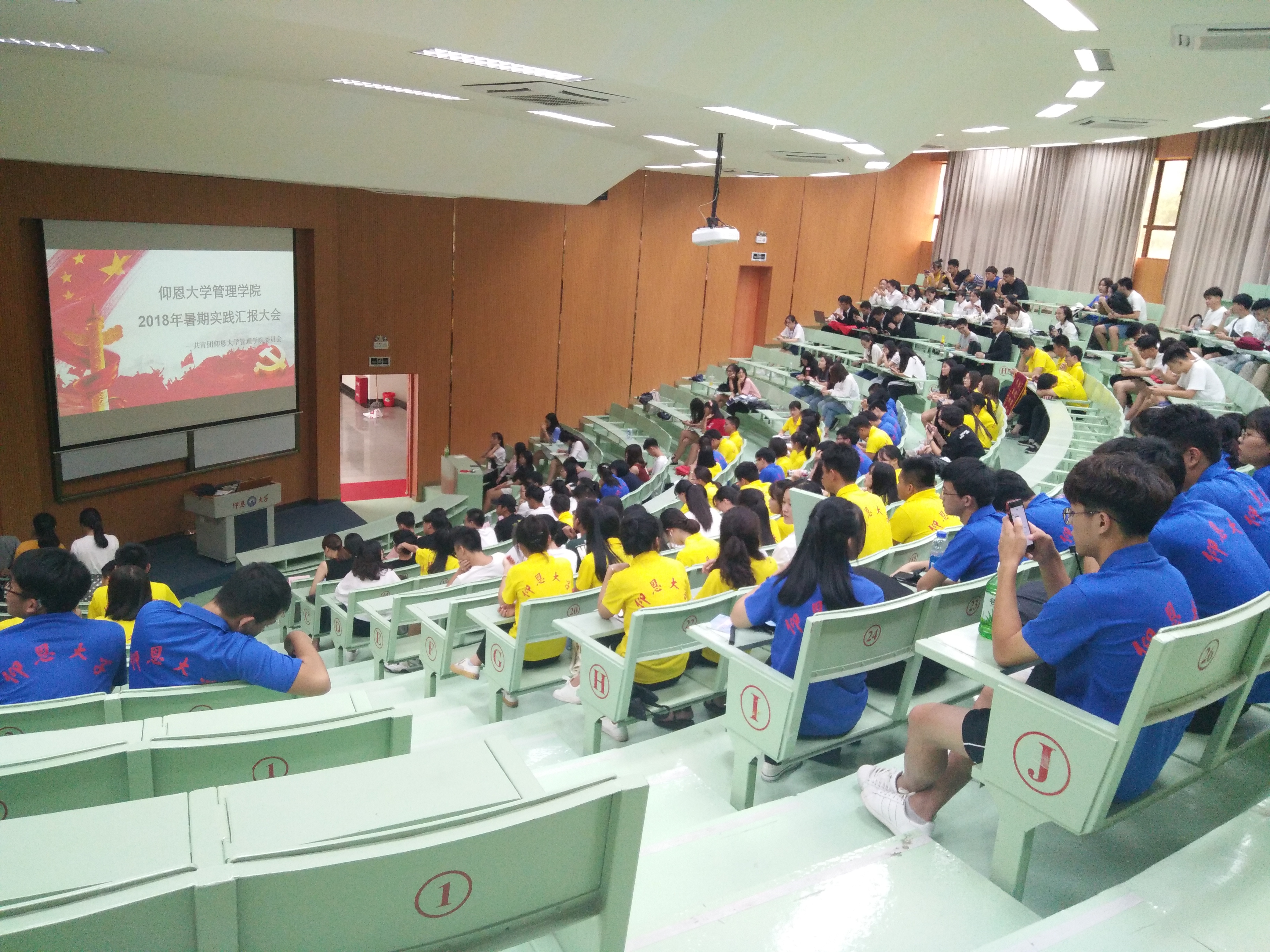 9月12日下午,开云2018年暑期实践汇报评选大会在第一教学区和昌教学楼乐之讲堂顺利举行。开云kaiyun官方网站党总支书记兼常务副院长许惠铭、工商管理系教师陈玉珠、市场营销系教师张迎华及全体辅导员、院团委副书记苏雅雅、院学生会主席周家为以及各实践队部分学生代表参加大会。