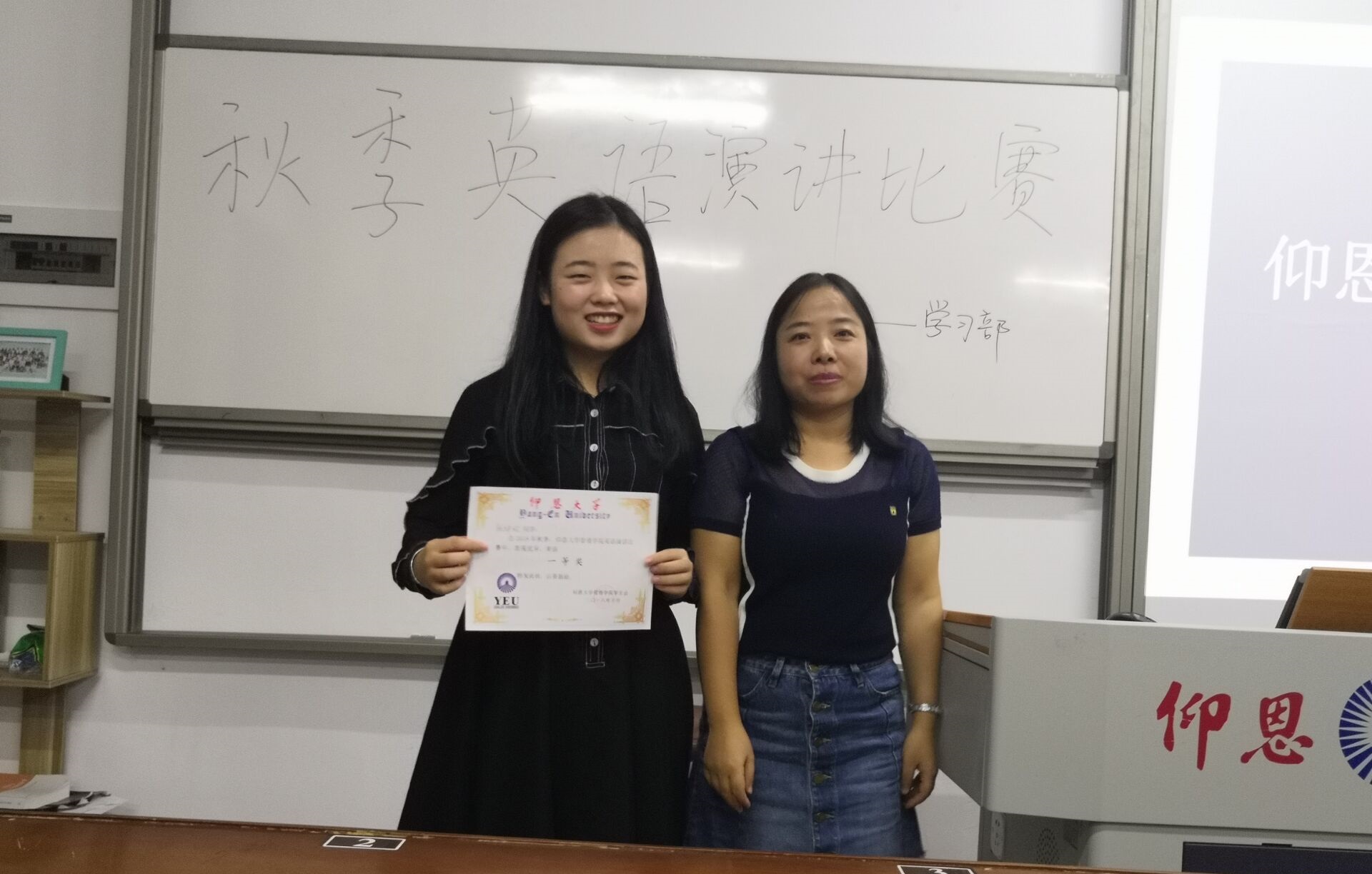 比赛现场 通过比赛不仅发现了大量英语人才,而且也带动了学生们的英语热情,展现出当代学生积极进取的形象,对开云的学风建设起到积极的促进作用。最终,张烨玲同学以90.75分成绩荣获一等奖,戴慧楠、吴炎萍同学获得二等奖,姚婧姿、陈玲玲、苏良明同学获得三等奖。张烨玲和戴慧楠将代表开云kaiyun官方网站参加校级决赛。