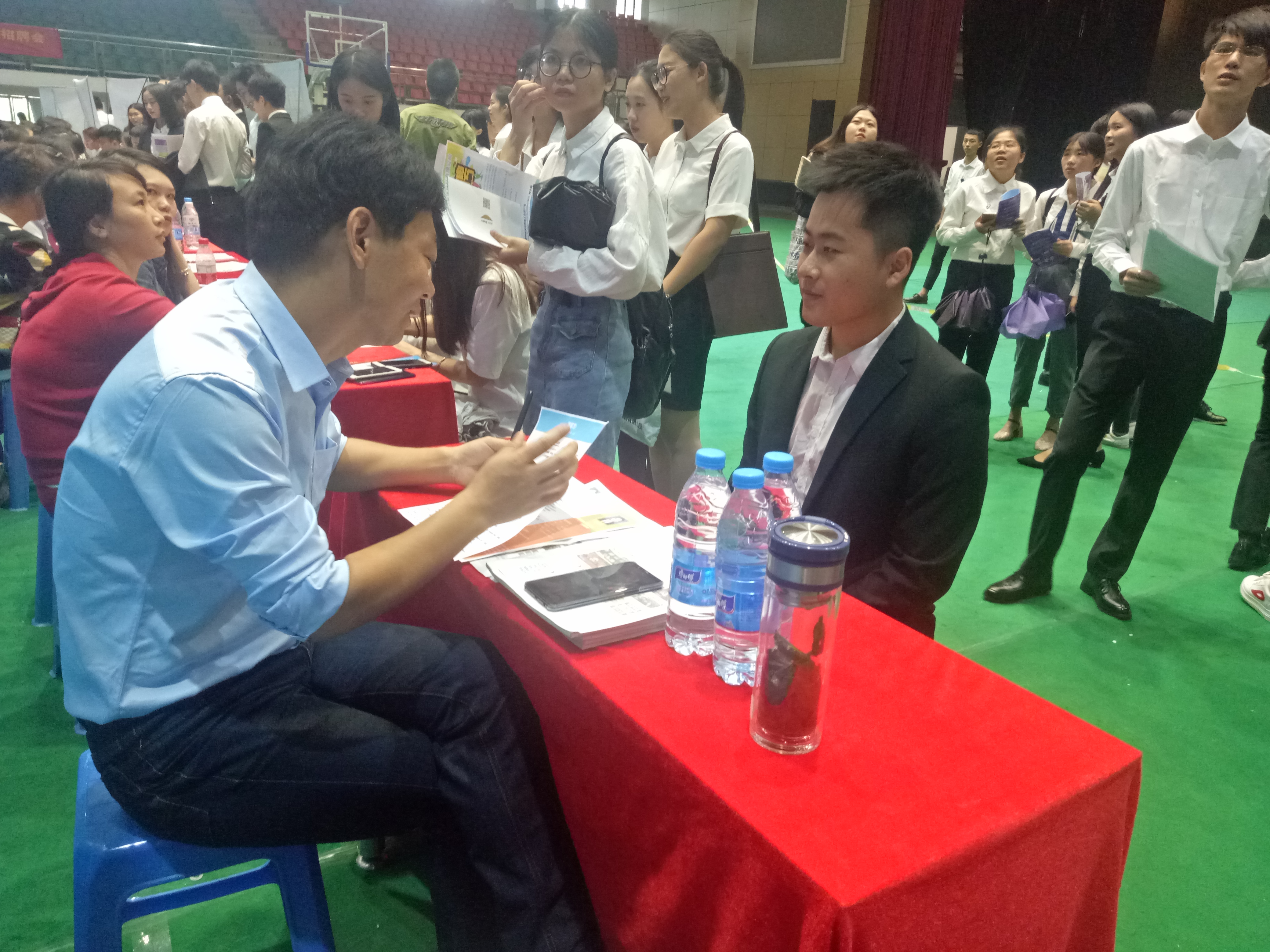 应聘者与招聘人员沟通交流 校园招聘会进一步促进了毕业生与用人单位之间的充分交流,增进了学校与用人单位之间的联动,有利于推进我校2019届毕业生就业工作顺利开展。(杜心田、谢静/文 陈薇/图)