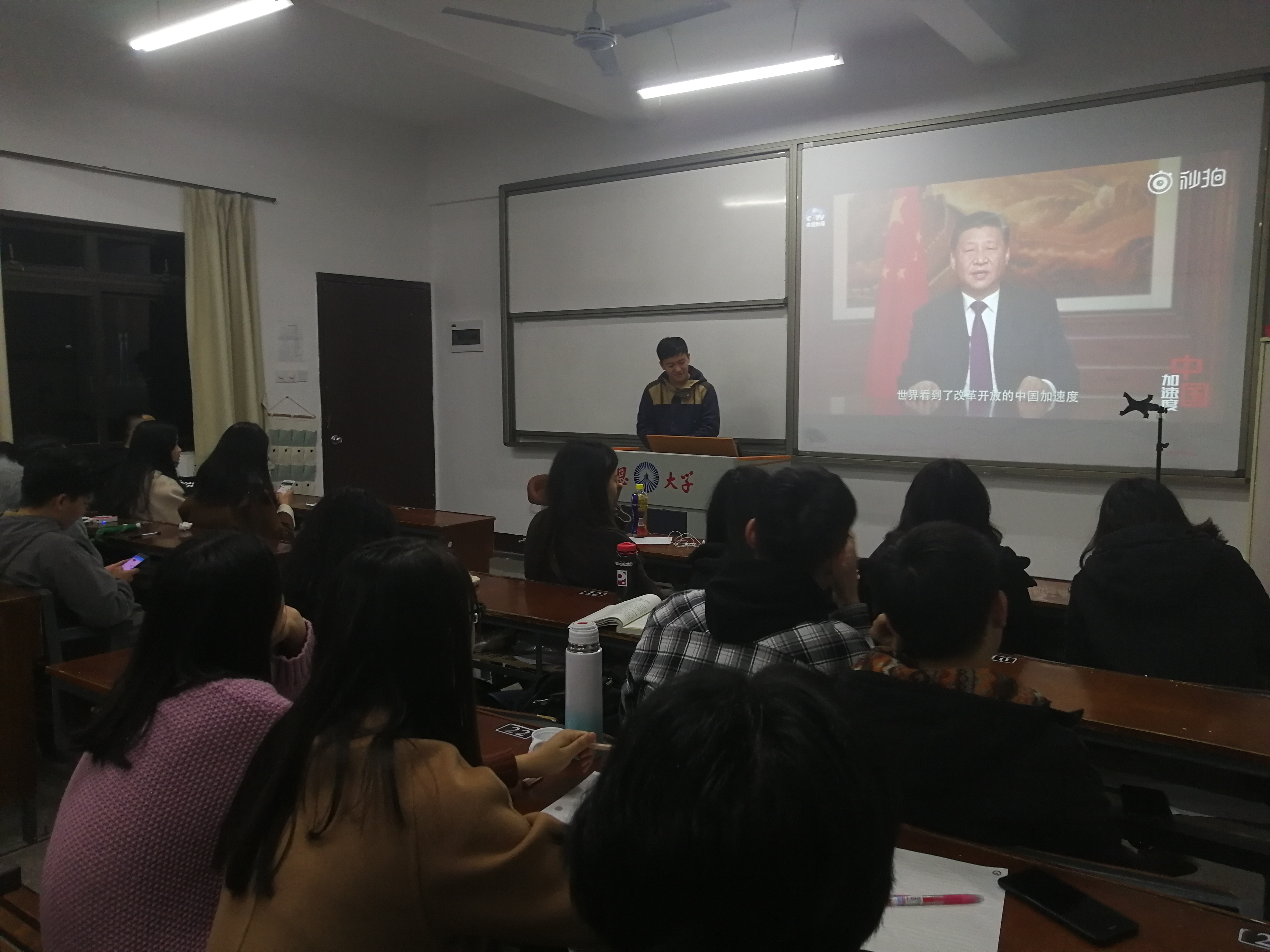 1月3日下午,市场营销系学生党支部在共和楼411开展《中国特色社会主义新时代标示我国发展新的历史方位》专题党课学习活动。市场营销系学生党支部全体党员到场参加学习。