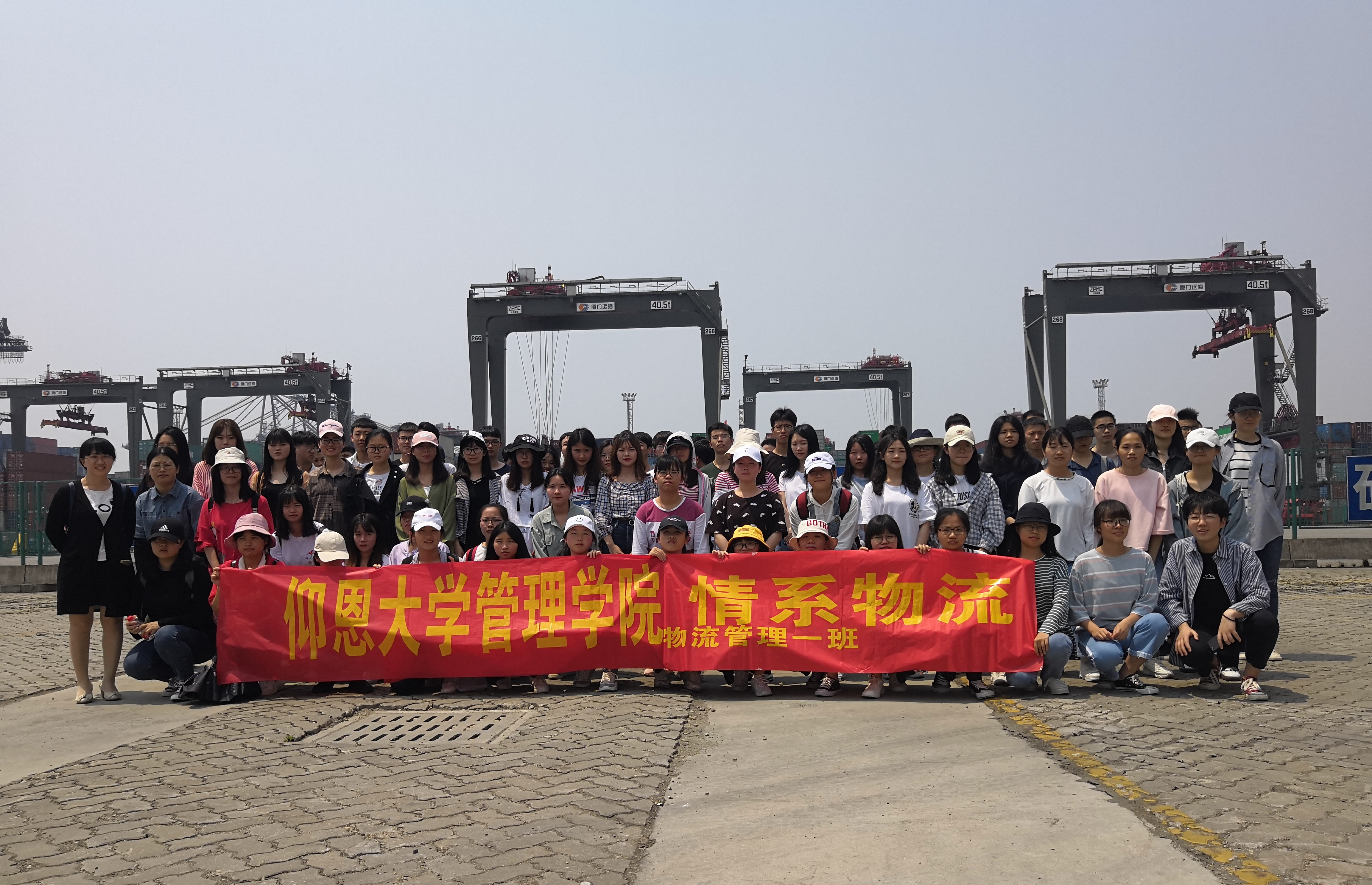远海码头参观合影 此次专业认知实践活动顺利开展,大大激发了学生对后续专业课程学习的热情,增强了同学们对物流管理专业的感性认知。同时也让学生在见习过程中深化对于物流行业的了解,明确今后的学习目标和就业方向。(杜心田、陈绍炯/文 陈绍炯/图)