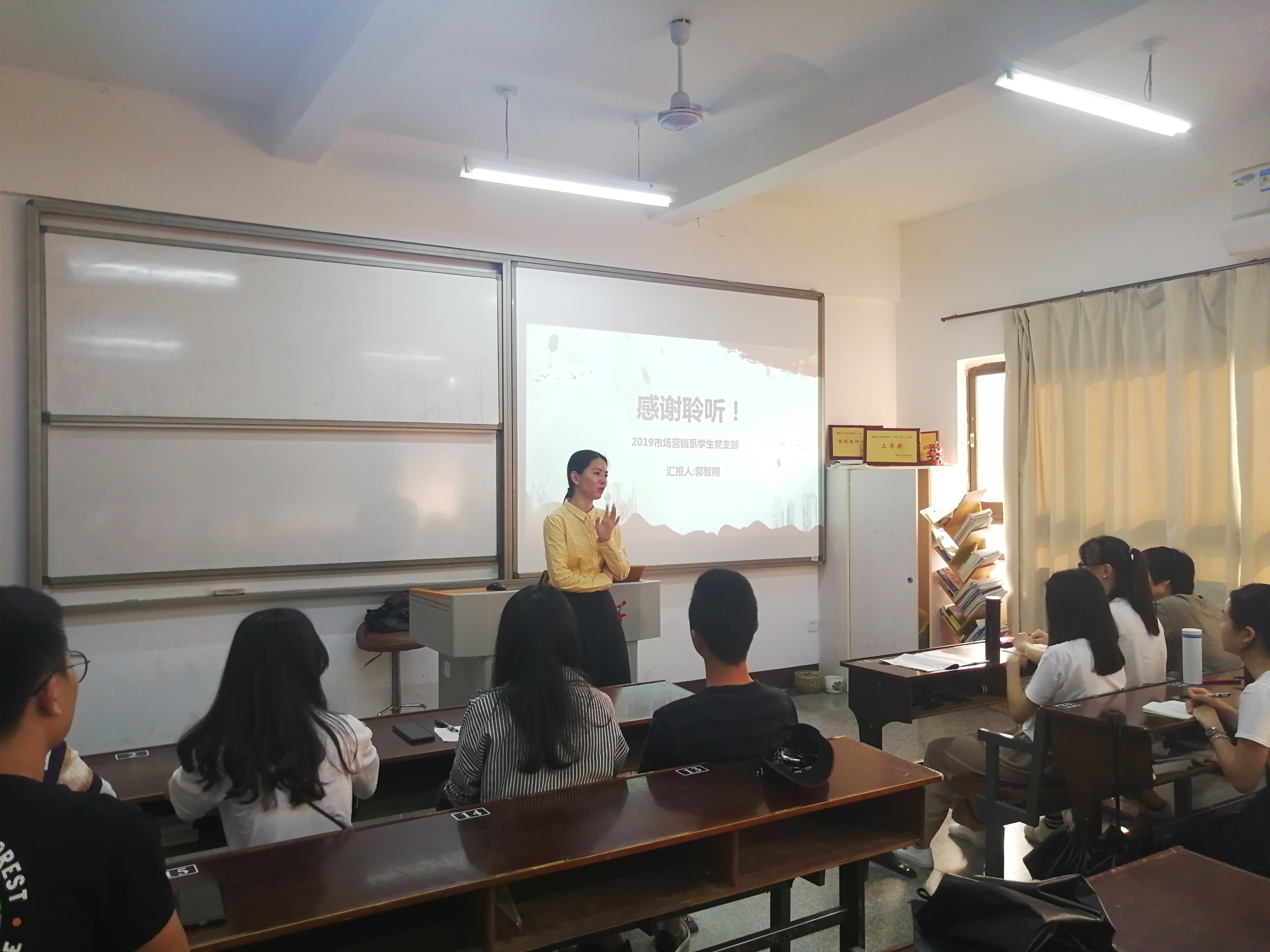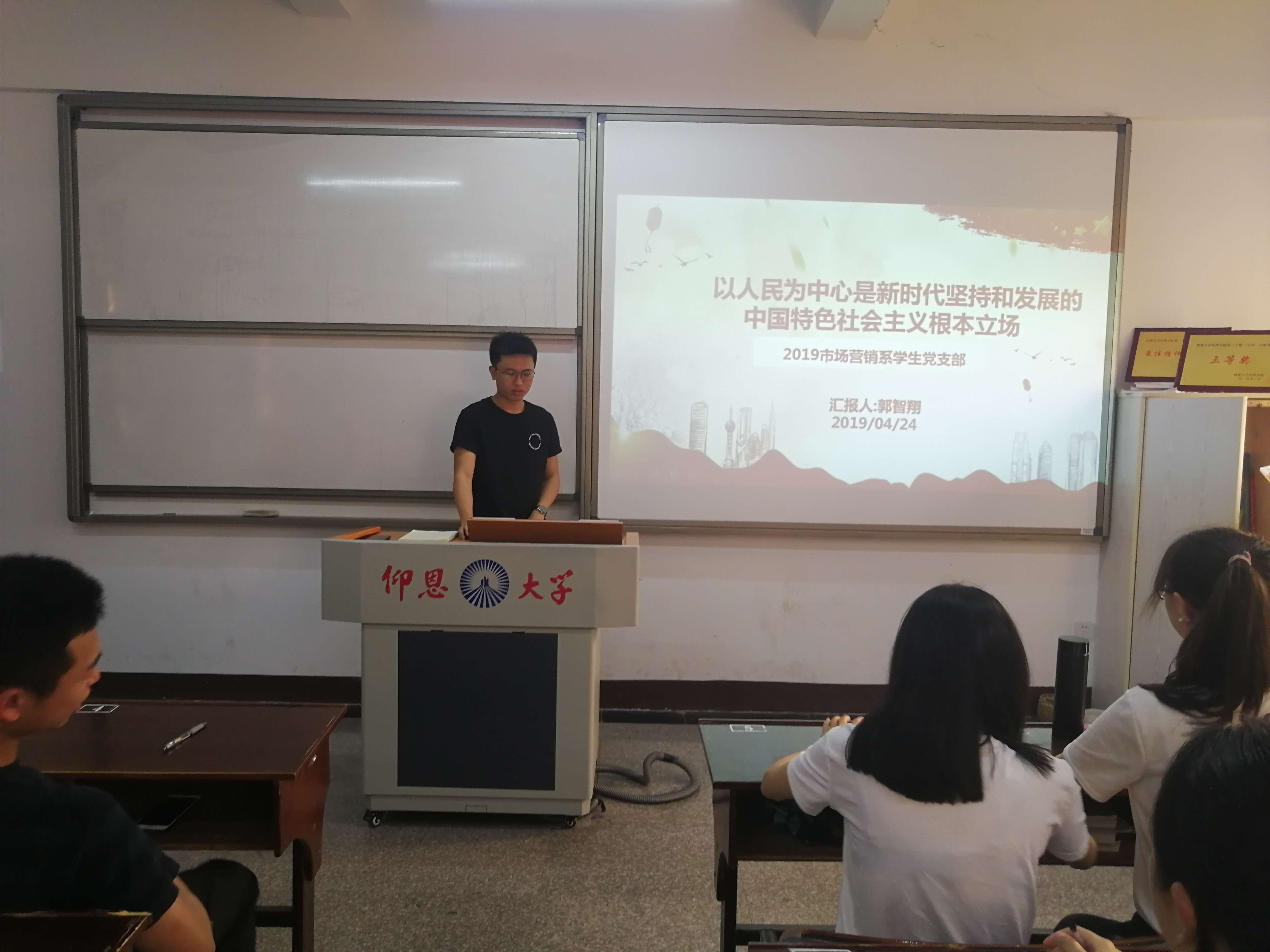 4月24日下午4点,市场营销系学生党支部在共和楼322开展关于《以人民为中心是新时代坚持和发展中国特色社会主义的根本立场》专题党课学习活动。参加本次学习活动的有市场营销系学生党支部书记连景霞以及支部全体党员。