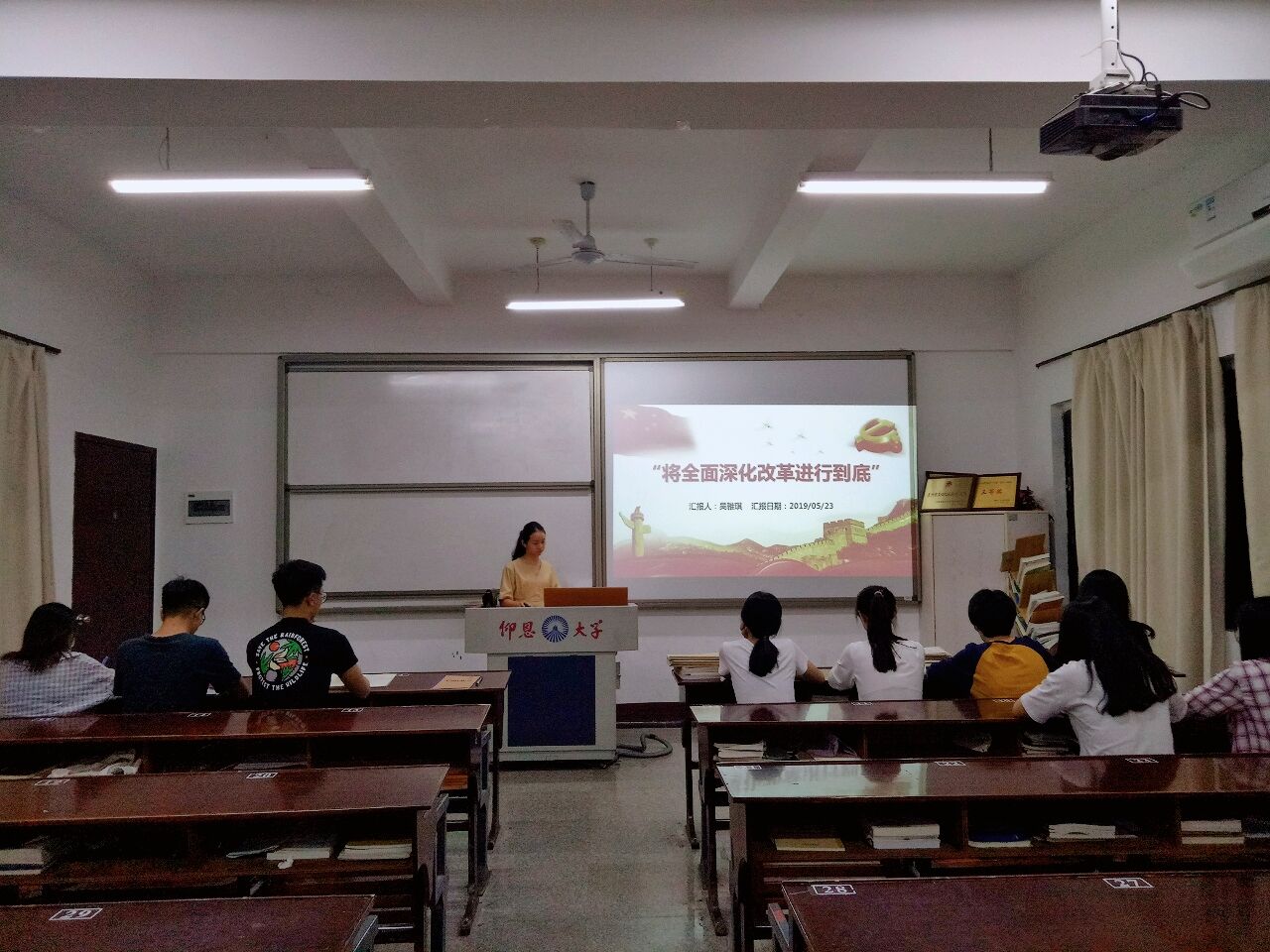 5月23日晚,市场营销系学生党支部在共和楼322开展关于《将全面深化改革进行到底》专题党课学习活动。市场营销系学生党支部全体成员参加本次学习活动。