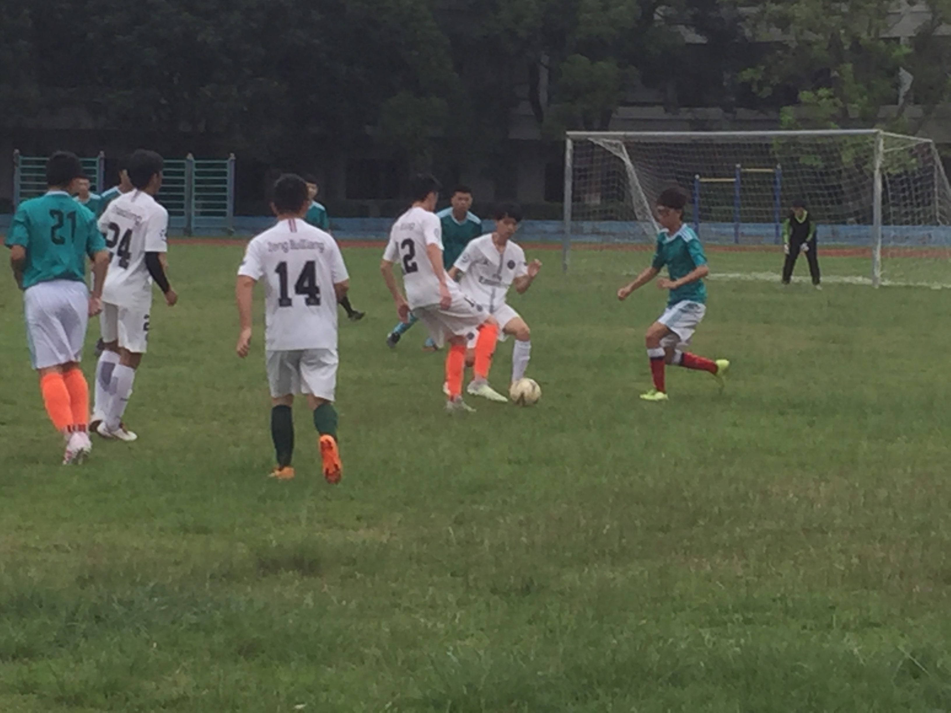 双方抢球 哨声一吹响,双方队员迅速进入状态。上半场比赛中,市场营销系虽处于弱势,但队员们坚毅不屈,在紧逼、凶抢的严密防守中,凭借队伍间巧妙传球配合,成功拦截对方进球,抢占有利位置。为了便于队员们观察场上情况,中场休息期间,市场营销系的队伍决定修改原先比赛方略,以不变应万变。下半场比赛,双方队员都有些体力不支,市场营销系队伍进行反攻,在下半场一开始抢先拿下一分。最终市场营销系的队伍拿下本届足球赛亚军的成绩,虽错失冠军头衔,但市场营销系坚持不懈的精神永不泯灭。