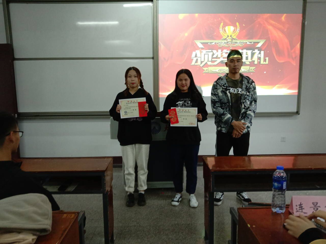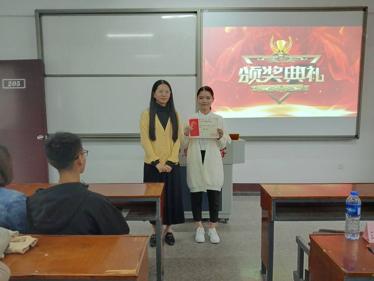 颁奖环节 比赛自12月2日启动以来,共历时16天,通过线下评委老师打分及线上投票,最终,张雪文、黄永祺荣获一等奖,郑彦宏、黄乐乐荣获二等奖,陈彦全、林心婷、傅峥晶荣获三等奖,郑彦宏荣获人气奖。活动现场,开云2019年国家奖学金获得者肖燕华分享了自己的大学经历,她号召学弟学妹们确定目标,不断向目标前进,成为自己想成为的人。最后,连景霞老师从“努力、自强、感恩”三个方面进行总结,教诲学生努力奋斗,学会感恩。
