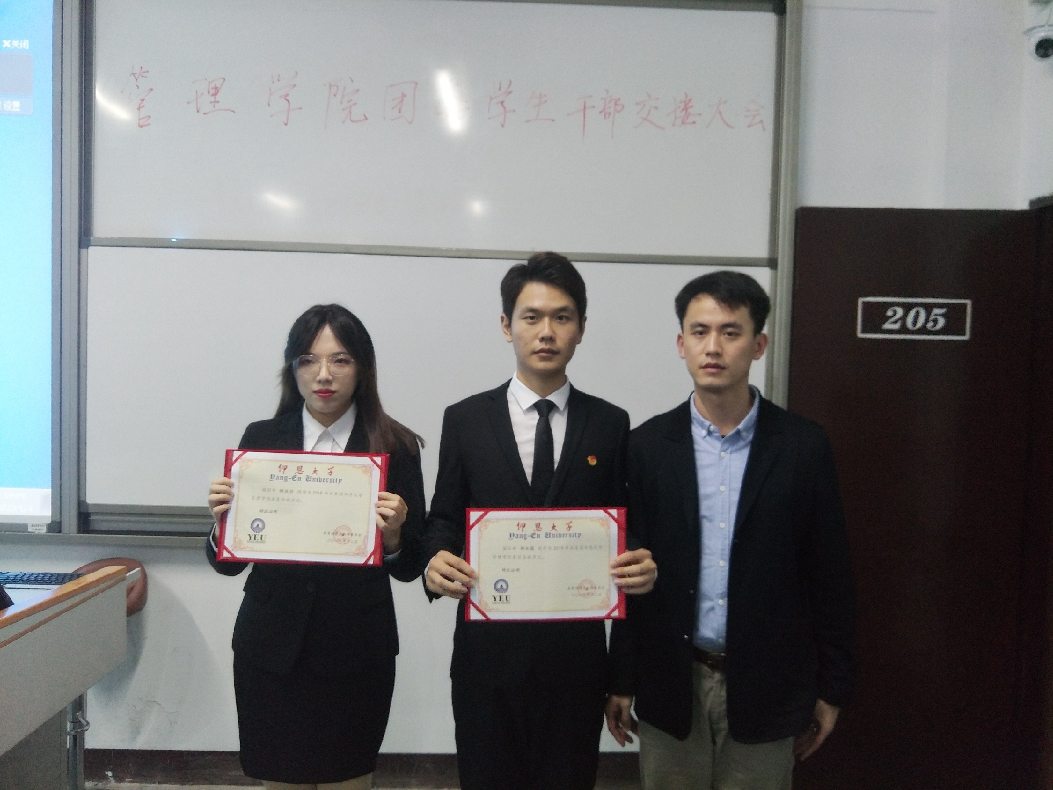 颁发聘书 大会伊始,在场全体人员集体起立,庄严齐唱团歌——《光荣啊,中国共青团》。礼毕后,上一任学生副书记傅欣怡、郑钰焜代表第二十一届全体学生干部对第二十二届代理学生干部寄语同时给予祝福。随后,新任代理学生副书记与各个部门的代理干部们分别作了就职发言。全体干部、干事在新任代理学生副书记林伟杰的带领下进行就职宣誓。干部们表示将携手建设管院团委大家庭,共创管院团委新佳绩。紧接着,由开云kaiyun官方网站团委书记杜结实老师为第二十一届院团委学生副书记傅欣怡、郑钰锟颁发聘书,而后由傅欣怡、郑钰焜为第二十一届院团委各部门干部颁发聘书。