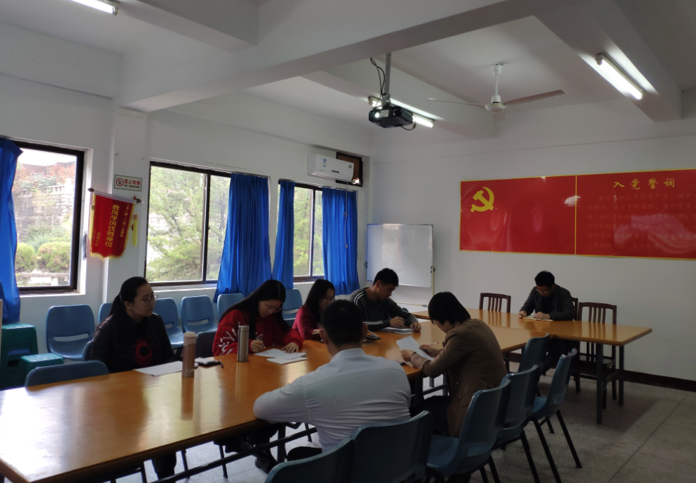 述职报告会现场 许惠铭对各位书记的述职逐一进行点评,充分肯定了各基层党支部在过去一年党建工作中取得的成绩,同时指出他们在基层党组织建设中存在的问题。许惠铭希望各基层党支部坚持围绕中心抓党建,把抓党建推动本单位中心工作贯穿始终,对标《中国共产党支部工作条例(试行)》《普通高等学校学生党建工作标准》等文件要求开展“对标争先”,以创建党建工作标杆学院、党建工作样板支部为目标,寻找差距,检视整改,打造特色,不断夯实基层党组织基础,把基层党组织打造成坚强的战斗堡垒。