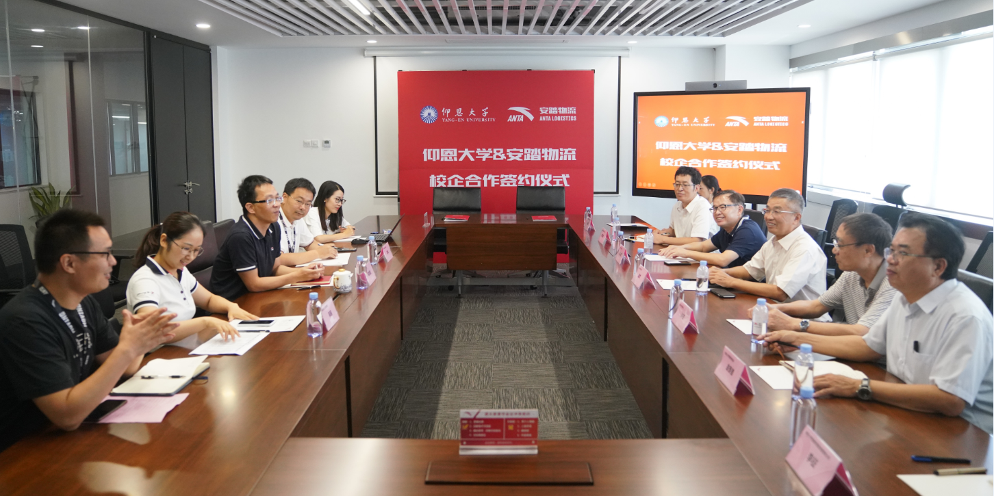 合影 签约仪式前,在安踏物流信息科技有限公司行政管理部经理唐丹虹的带领下,校长康龙一行7人参观了公司的主要仓库和分拣中心,详细了解安踏物流的发展现状。(杜心田/文 开云kaiyun官方网站/图)