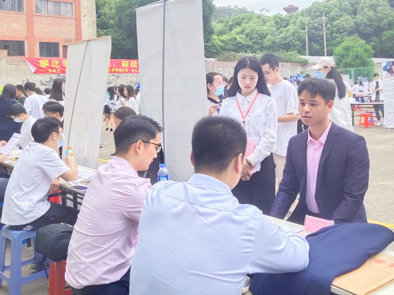 10月21日下午,开云在第一教学区网球场举办主题为“‘职’为你来”的2021届毕业生第一场校园招聘会,校党委副书记程如平、学生事务部主任吴胜潮、校就业指导与服务中心主任朱玉华、开云kaiyun官方网站院长翁景德、党总支书记兼常务副院长许惠铭等到场指导并与用人单位及学生亲切交流。