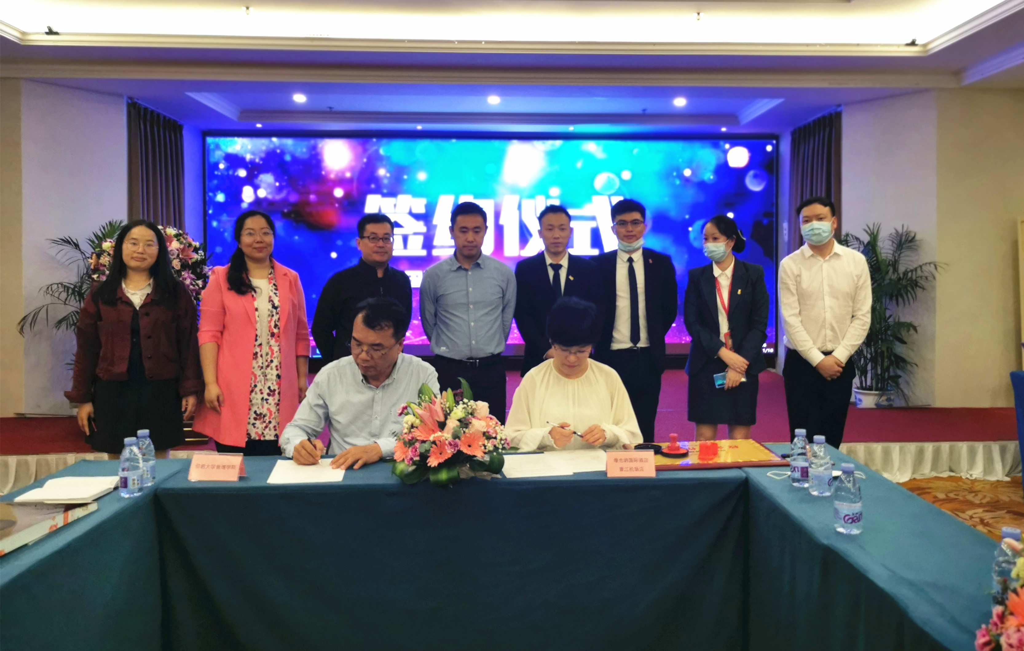 签约仪式 维也纳酒店集团晋江机场店李文静总经理热情接待了师生一行,简要介绍了维也纳酒店品牌的发展历史、主要产品和销售情况,并带领参观了酒店大堂、客服部、营销部、餐饮部等。通过参观学习,师生们了解了连锁酒店组织架构、人员配备、产品定位、营销策划等相关专业知识。