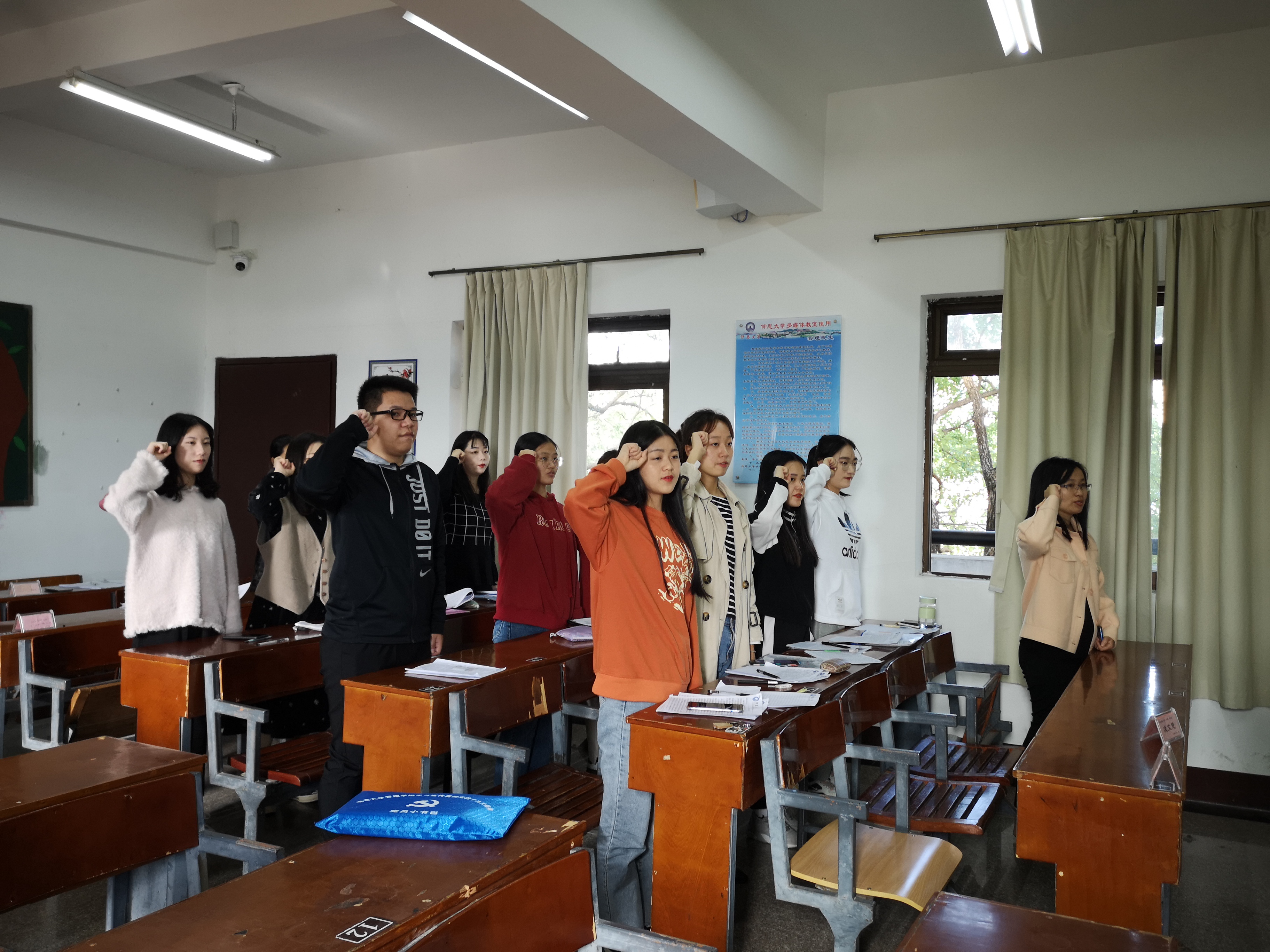 党旗进行庄严宣誓 宣布后,预备党员同志们,分别面对党旗进行庄严宣誓,也向大会表达了自身的想法与决心,不忘初心,牢记使命,在今后的学习工作中,坚定理想信念,努力改正现有不足,积极向优秀共产党员学习树立先锋模范作用,争取早日正式加入中国共产党。(文/沈婉玲 审核:蔡惠丽)