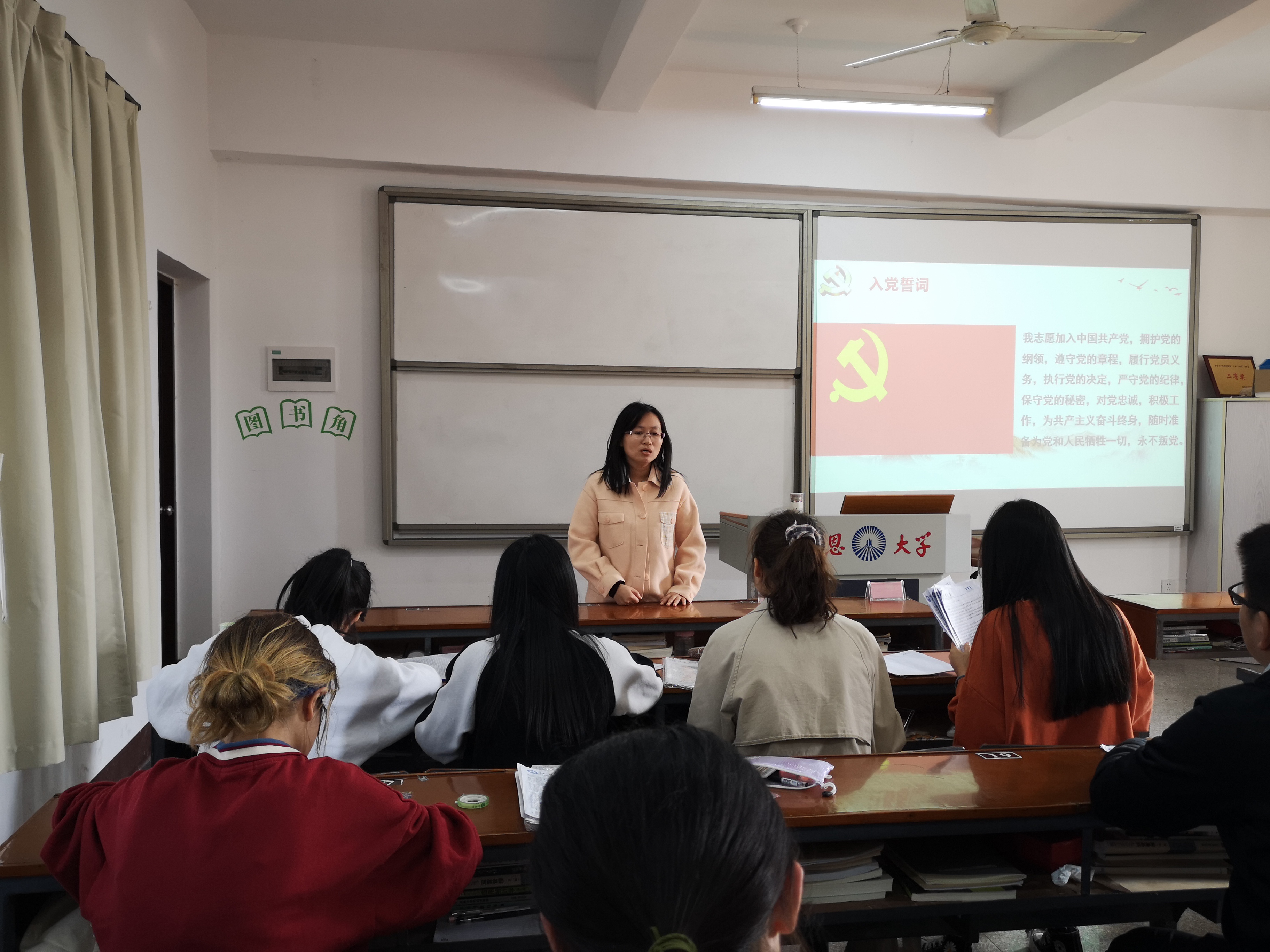 2020年12月2日,开云kaiyun官方网站工商管理系学生党支部在开云kaiyun官方网站第一教学区共和楼310隆重召开预备党员接收大会,该会由支部书记蔡惠丽同志主持,该支部全体党员同志、预备党员及被发展对象参与此次议会。
