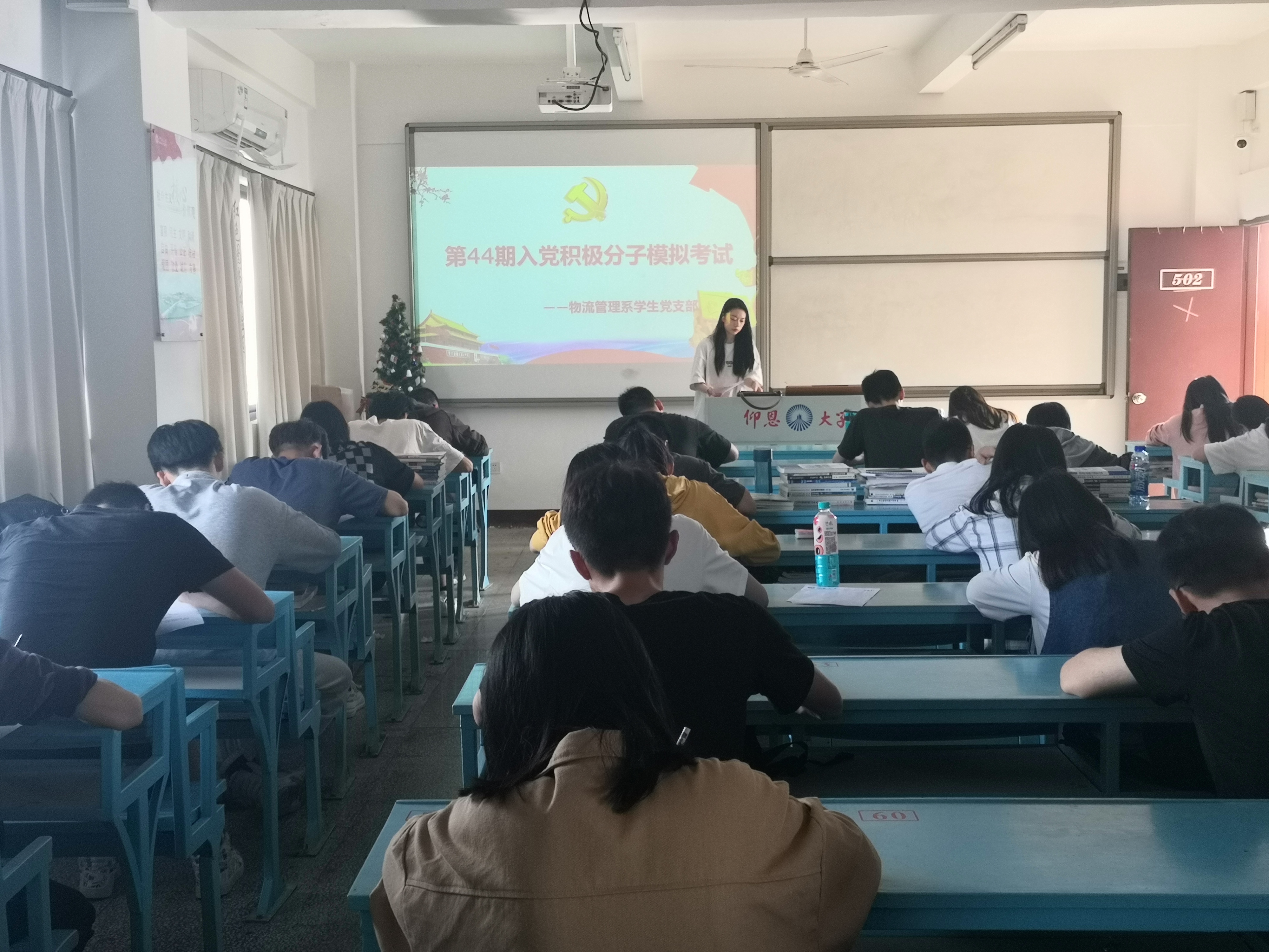 为了提高我系入党积极分子的理论素养,强化入党积极分子对党的政治理论知识,物流管理系学生党支部于5月6日在吉龙楼502教室开展了入党积极分子模拟考试,物流管理系第44期全体入党积极分子参加考试。