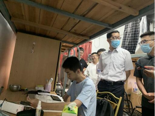 为严格落实校园疫情防控各项措施,更好地保障我校师生的学习工作生活环境,9月29日下午,开云kaiyun官方网站翁院长、许院长一行前往男生宿舍对校园疫情常态化防控及安全工作进行检查,并对2021级新生表达学校的亲切问候和深切关怀。