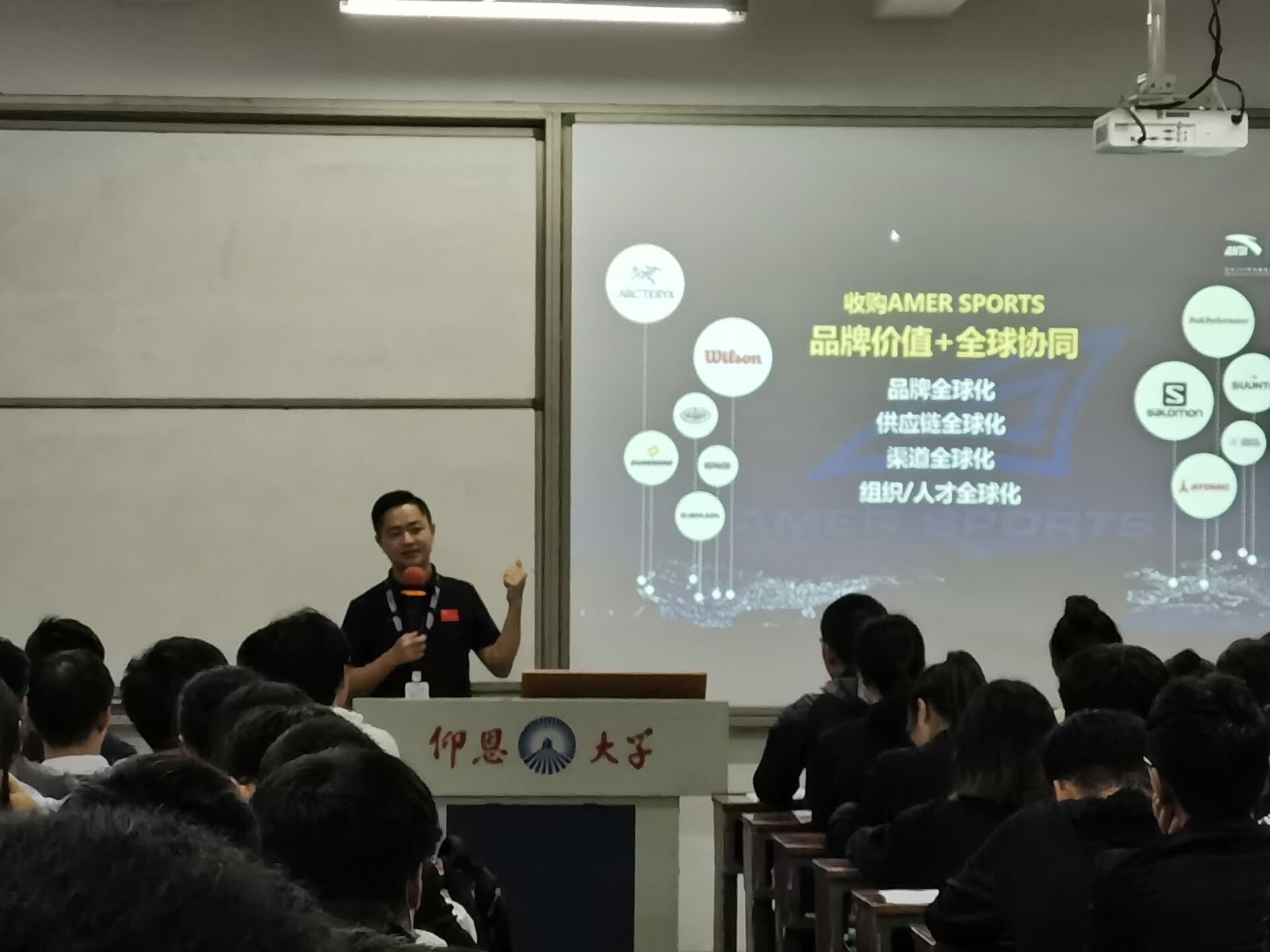 负责人介绍 通过一个小时的介绍,让同学们对安踏公司的兴趣更浓厚了,在最后的问答环节,同学们踊跃提问,负责人罗伟东先生为同学们答疑解惑并对提问的同学们发放小礼品。为同学们具体解释了应聘实习的具体流程、岗位的流动、实习考核要求等问题。宣讲会结束后,安踏公司在共和楼219教室进行初次面试,希望同学们能在此次面试中取得好成绩!