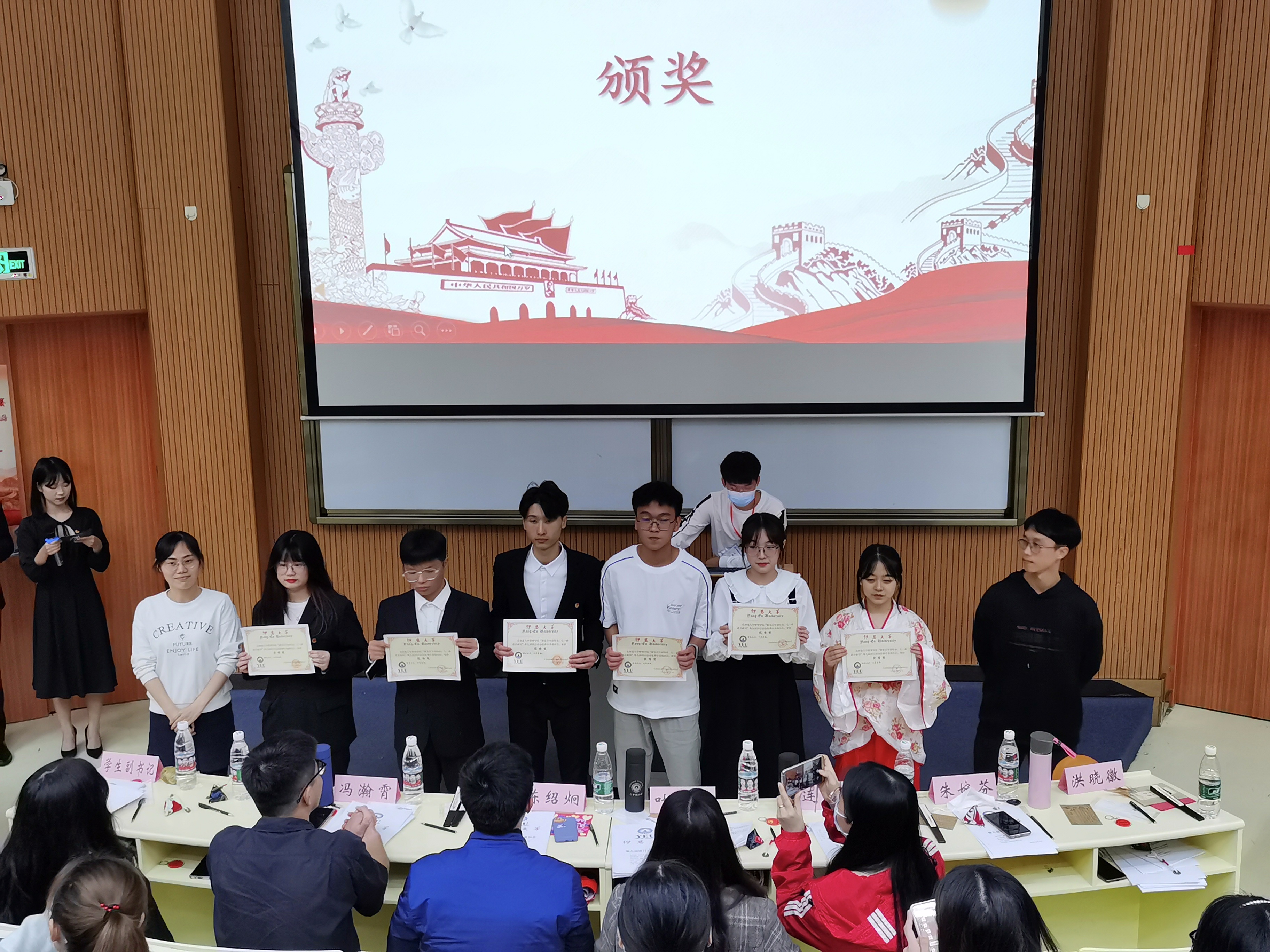 颁奖环节 比赛开始前,陈绍炯老师上台进行了简要的致辞,表达了对参赛选手们的期待与祝福。而后比赛环节中,参加选手紧紧围绕各个团支部团日活动特色进行汇报展示,展示内容丰富新颖,形式灵活多样,在彰显各团支部青春风采、展现时代青年历史使命的基础上,充分展示了团学活动的亮点和本团支部的优势。演讲汇报者们自信从容,精神饱满,感情充沛,表达流畅,他们富有感染力的话语感染了现场的每一位观众,赢得台下观众阵阵喝彩。颁奖环节前,为了缓解大家的紧张情绪,现场还进行了听歌猜曲的游戏环节。经过精彩的比赛,最终21市销1班荣获一等奖,21市销2班和20市销1班荣获二等奖,三等奖有21工工1班、21工管2班和21人资1班,优秀奖有19市销1班、20工管2班、21工管专升本2班、21物流1班、19物流1班和21物流专升本1班。