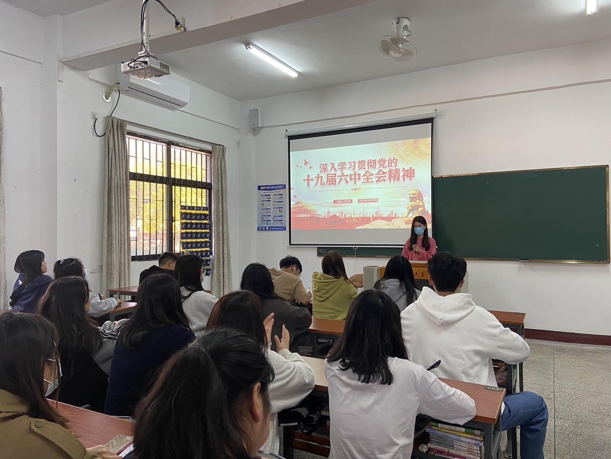3月7日下午,市场营销系学生党支部在祥贤楼104教室开展深入学习贯彻党的十九届六中全会精神党课活动,本次活动由许玉芳同志主持,全体党员参加。