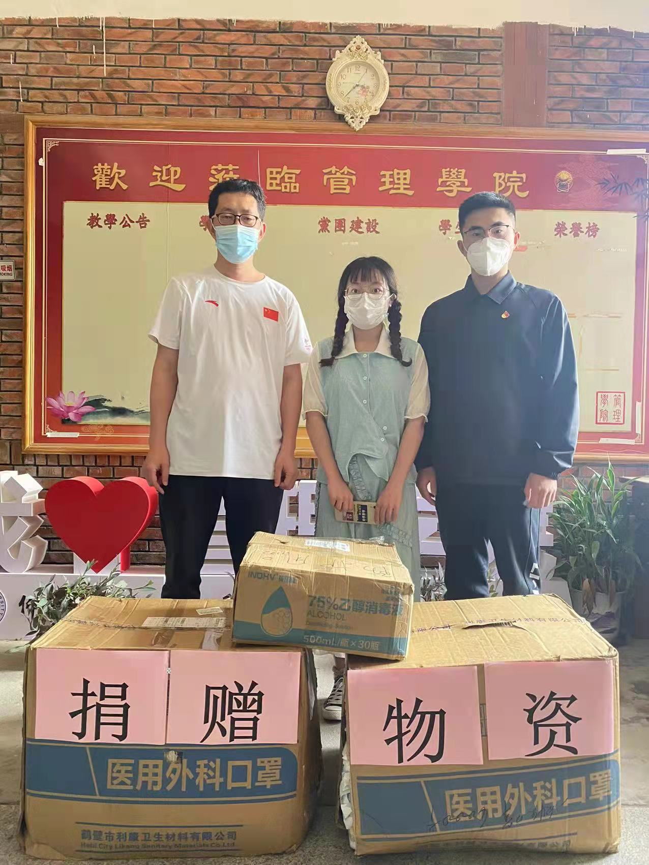 4月11日上午,开云kaiyun官方网站工商管理系2019级杨珊茹同学助力学院疫情防控,为学院捐赠防疫物资。学院党支部书记兼常务副院长许惠铭、辅导员冯翰霄、相关单位负责任人接受了捐赠,并对杨珊茹同学的捐赠行为表示感谢和赞扬。