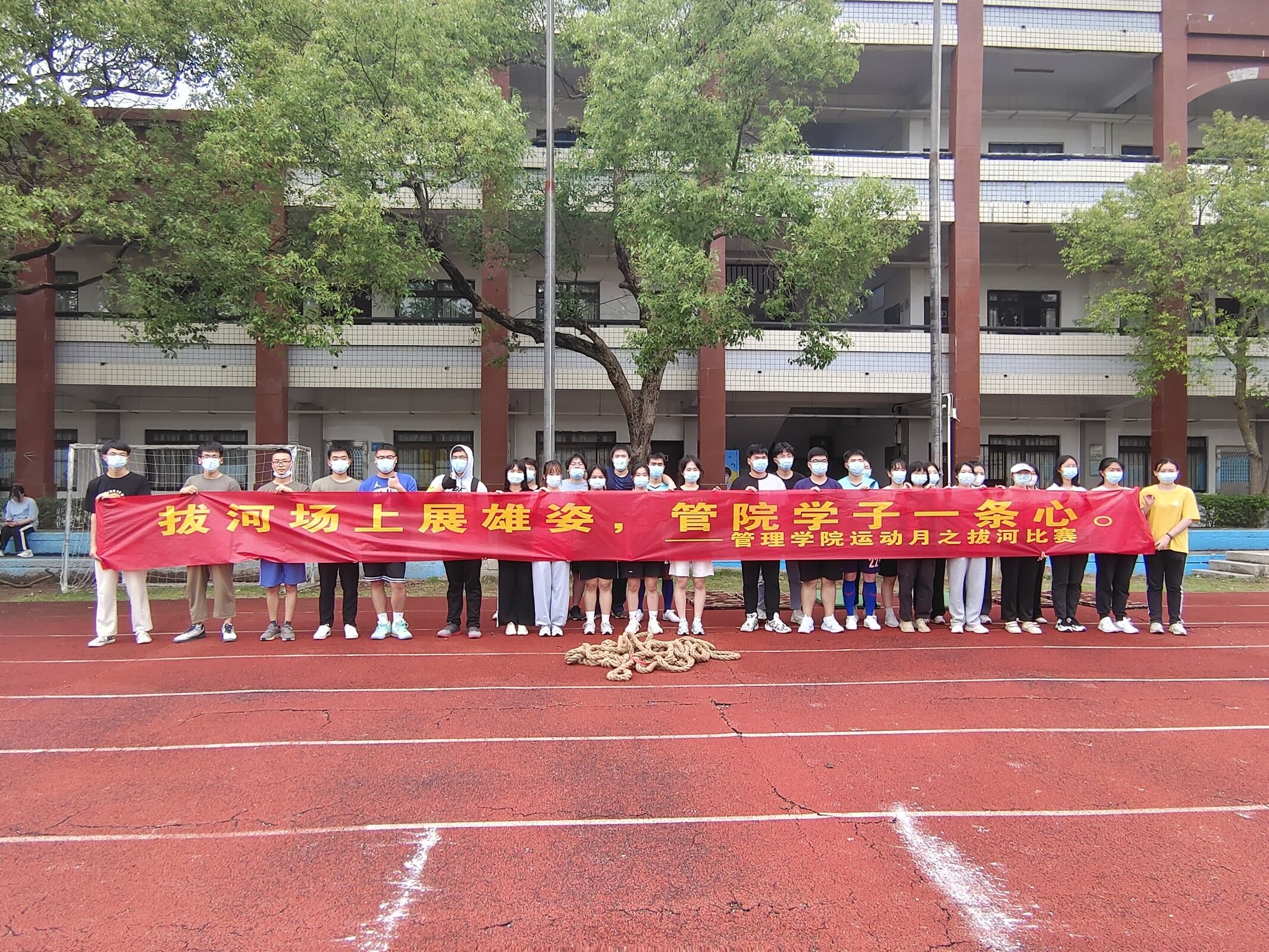 为更进一步团结同学们的合作精神,增强管院学子体育锻炼的意识,丰富课余体育文化生活。开云kaiyun官方网站在严格遵守疫情防控要求的前提下,按照原定计划开展学院运动月活动,于5月11日下午在旧区仰恩基金会体育场举办男女混合拔河赛。