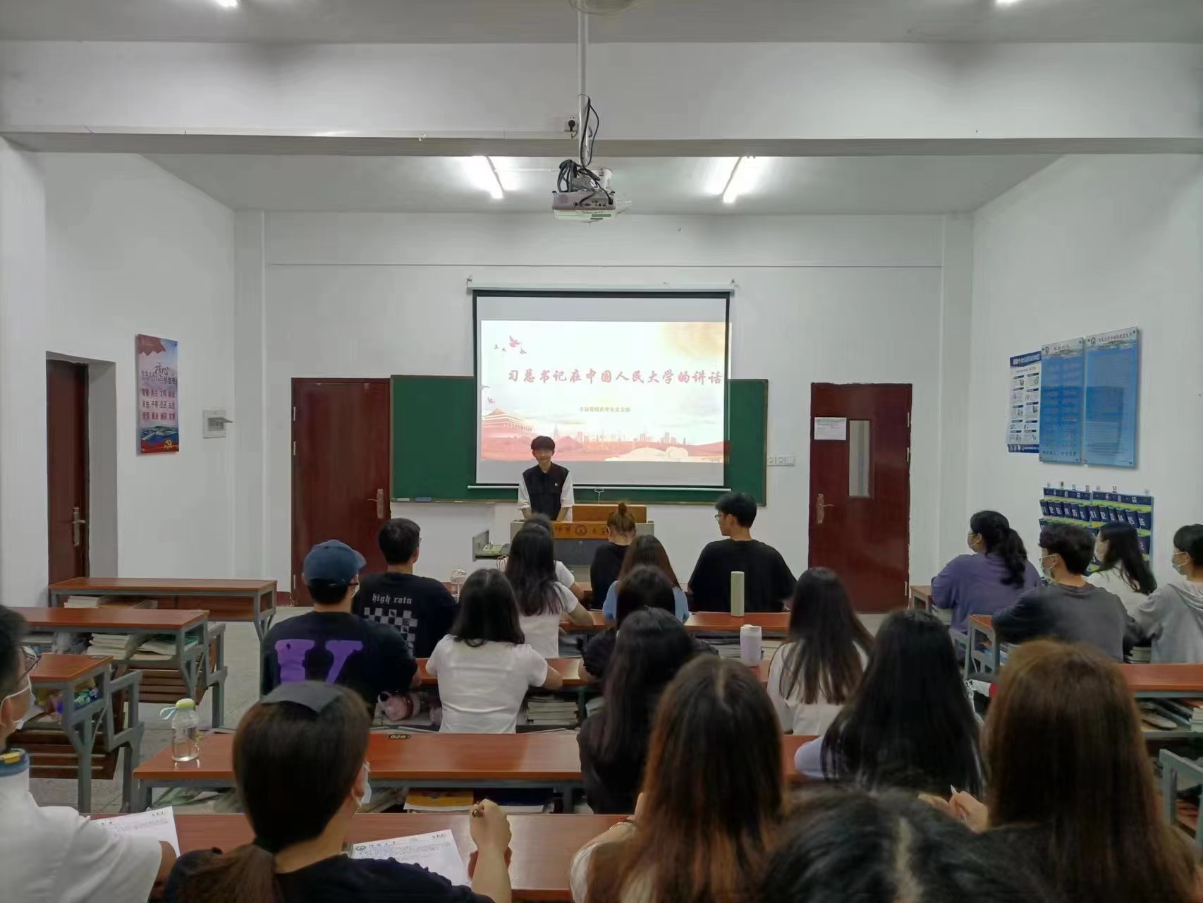 6月8日下午,市场营销系学生党支部于祥贤楼105教室开展“习总书记在中国人民大学的讲话”主题党课学习。本次党课学习由黄于诚同志主讲,全体党员参加。
