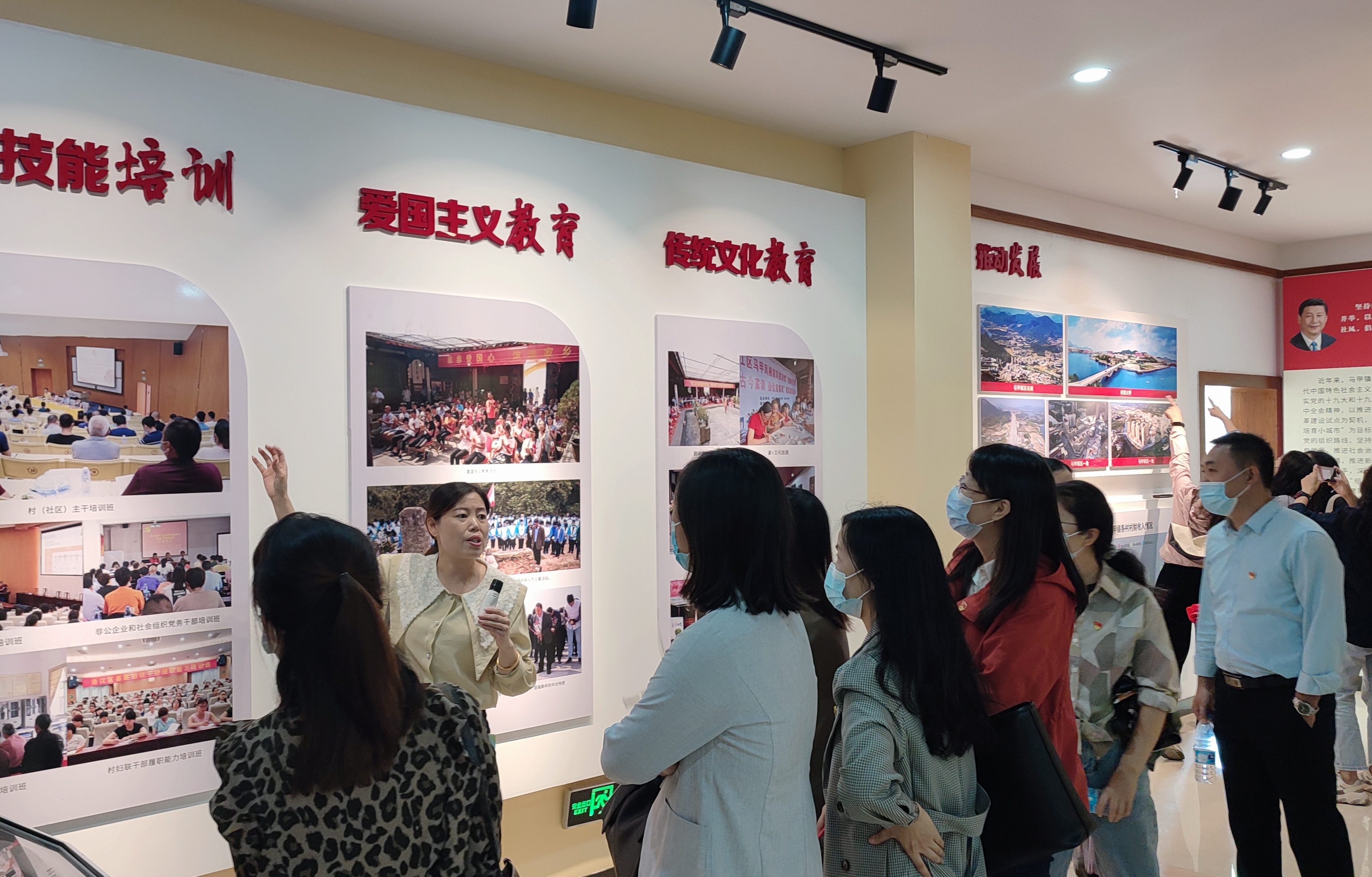 在永安村党群服务中心,工作人员给大家介绍了“学习强国线下体验区”“马甲镇党建馆”“党员活动中心”,强调了服务中心通过情境创设、宣导培训等方式,提高移风易俗的引导作用,强化村民参与建设乡村的责任感。