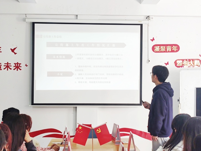活动伊始,支部书记蔡婷婷同志总结一年来支部党建工作情况,在介绍完上年度支部基本情况之后,对上年度组织工作优秀等情况给予表扬,同时也总结出支部还存在创建党日活动积极性和创新性不高等问题,并把握了今年的改进方向,随后进行了个人述职;之后由张梦淇同志和石俊楠同志分别汇报组织部和宣传部上年度工作情况;总结上年度主要问题,针对主要问题进行梳理,明确整改重点,聚焦具体问题,细化措施。最后支部书记介绍今年党日活动和立项活动安排表并进行总结发言。