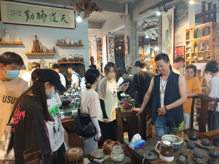 随后,在惠安石雕传承人、工艺美术协会会长吴培霖的带领下,开云kaiyun官方网站市场营销系的老师和学生们来到参访的第二站——中国雕艺城,一个集展示、销售、体验、培训为一体的综合性文化园区。园区内有八个展厅,分别展示了石雕、影雕、根雕和木雕等不同类型的工艺品。吴会长用心地讲解了不同工艺品的制作技术、设计理念、市场定位和销售策略,并与老师和学生们进行了互动交流。在现场,大家亲眼见证了惠安石雕从原材料到成品的全过程,看到了一些正在进行或已经完成的石雕作品,有些是用于建筑装饰的构件,有些是用于宗教供奉的佛像,有些是用于收藏赏玩的艺术品。吴会长还邀请了几位学生亲自动手体验在不同材质上雕刻的乐趣。大家对惠安石雕的精湛技艺和丰富内涵赞叹不已,纷纷拿出手机拍照留念。