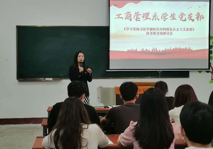 为深入开展学习贯彻习近平新时代中国特色社会主义思想主题教育,根据工商管理系学生党支部读书班工作安排,2023年6月8日下午,工商管理系学生党支部于祥贤楼101室开展“学习贯彻习近平新时代中国特色社会主义思想”主题教育读书班集中交流研讨活动,工商管理系全体党员参加此次活动。工商管理系学生党支部书记李超楠老师主持读书班集中交流研讨。