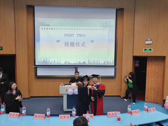 会上,翁景德院长为毕业晚会作开幕致辞并为2023届人力资源管理系毕业生们举行拨穗仪式。翁景德院长将满腔的牵挂化作殷切的祝福和希望:“学会做人,守信笃行;学会做事,创业有成。”望同学们常怀感恩之心,德行天下,昂扬奋发;望同学们永远不放弃对真善美的追求,做有正气、有朝气的人;未来已来,未来我来,望同学们需具备仁者的力量和担当。随后,学长学姐进行经验分享、播放视频“回眸校园”。最后,由许惠铭书记为毕业学生们送上寄语。