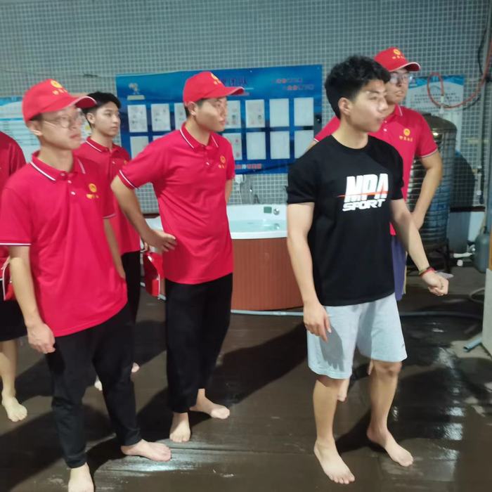 吃过午饭时间到达下午14点后,我们进行岗位熟悉过程,由企业人员带我们了解该公司的岗位。在救生岗中,我们大家分别体验了救生椅,还有救生设备的使用,在馆内,如若有人员受伤如何正确的使用药品及急救措施,同时,在游泳池里如何判断安全和危险的发生。