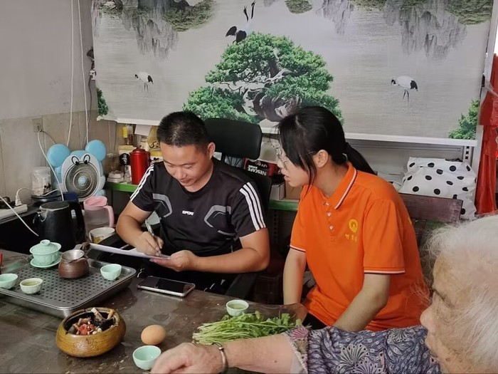 (向居民进行问卷调查图)