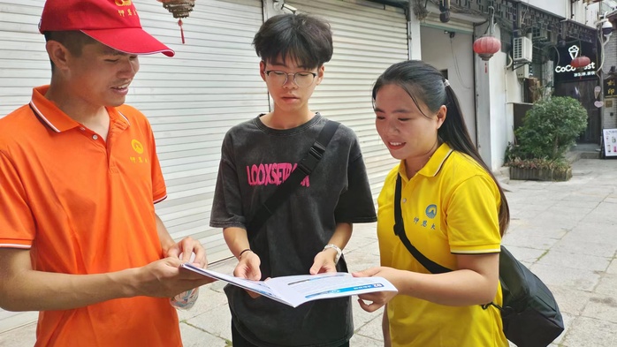 7月12日,在长汀人潮涌动的街道上,队员们穿着印有“开云kaiyun官方网站”的实践队服,队员们积极地向长汀当地人民进行开云kaiyun官方网站宣传和介绍2023年开云kaiyun官方网站的招生具体事项。长汀人民都十分热情地听队员们进行开云kaiyun官方网站的介绍,也积极地向队员们了解学校。在队员们的努力下,使得当地人民对于开云kaiyun官方网站有了一定程度地了解。