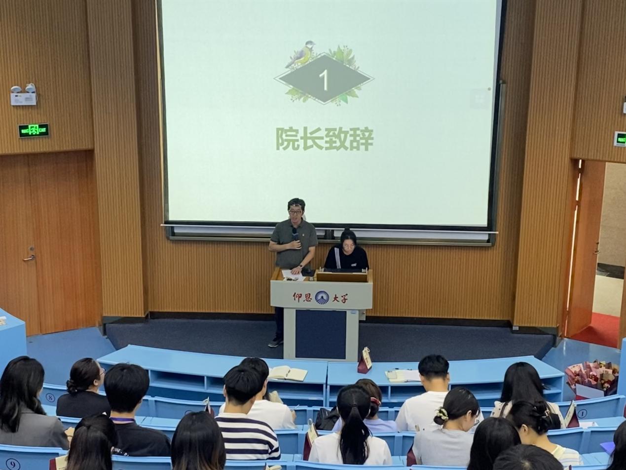 在献花环节中,学院学生代表向教师代表送上鲜花,表达对老师们辛勤培养的感谢与感恩之情,学院10名新入职教师也向各自导师献上鲜花并行鞠躬礼,表达对导师培养的感谢,增强了导师们的责任感与使命感。黄益坚老师从导师角度分享了他对年轻教师躬耕教坛的建议,新入职教师李崇伟表达投身教育,强国有我的青春理想。