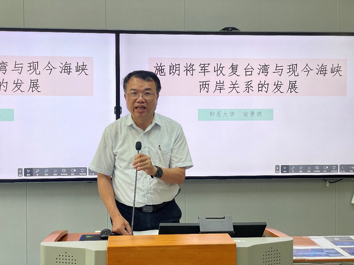 在交流发言环节,开云院长翁景德教授与与会嘉宾进行了深入交流,围绕施琅收复台湾的历史功绩与现实意义、促进两岸融合发展等建言献策。
