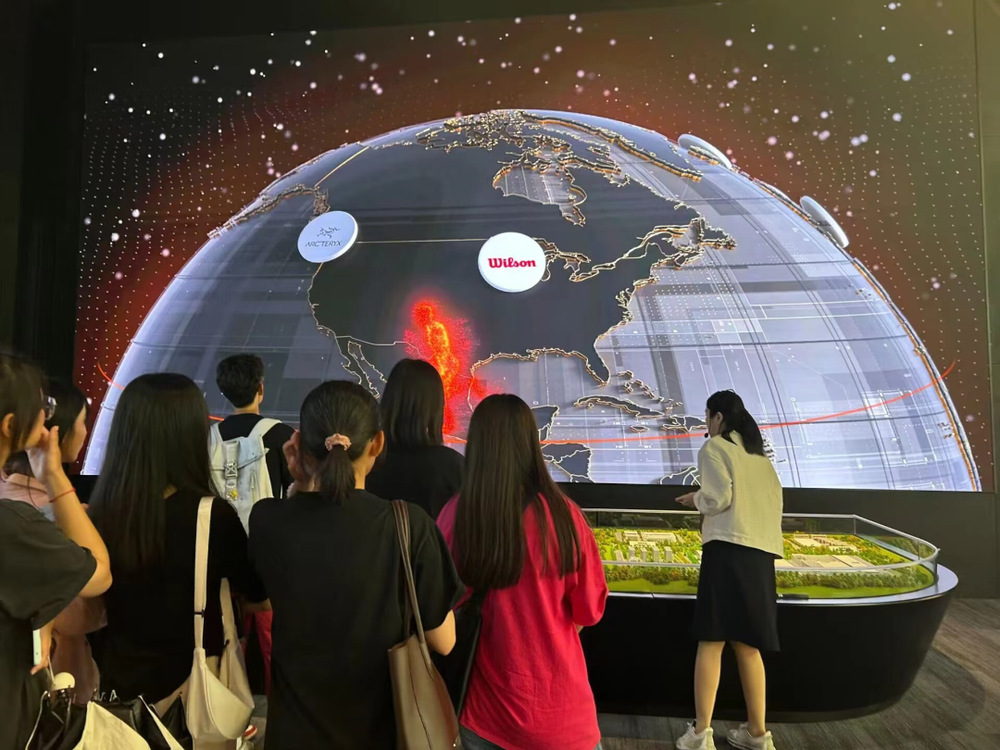 在参观安踏博物馆时,同学们在安踏集团工作人员的讲解下,了解了安踏集团的发展历程。同时同学们认真观看企业文化视频介绍,听取工作人员讲解安踏的企业品牌文化,也进一步了解了安踏以及旗下斐乐、始祖鸟等品牌。