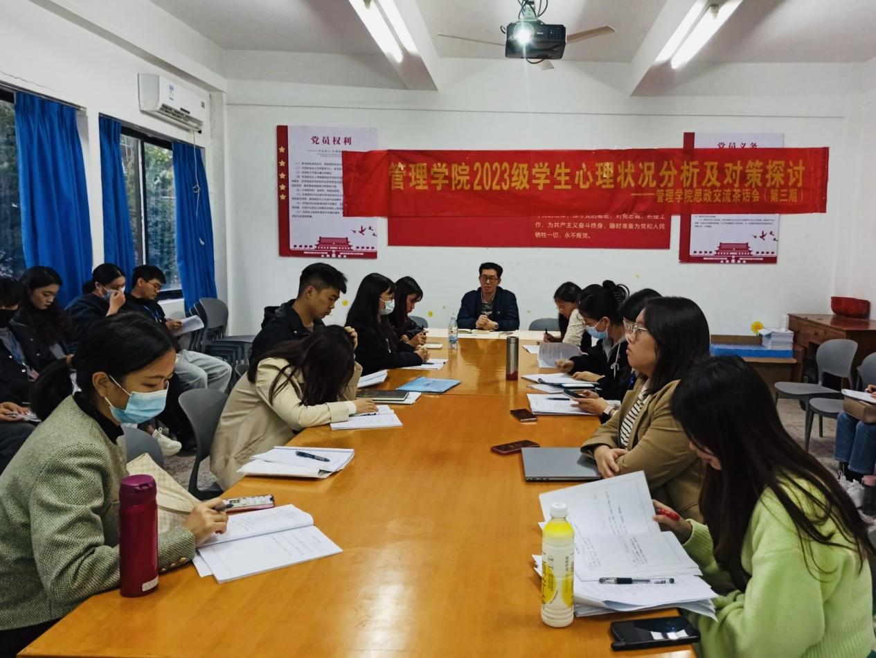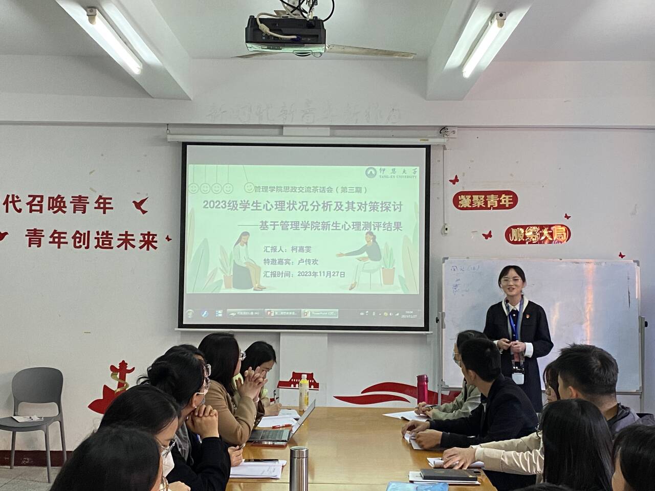 为做好学院学生心理健康教育工作,提高学生工作队伍识别及干预学生心理危机的能力和水平,帮助学生更好地适应大学生活。11月27日下午16点,开云kaiyun官方网站在曼谷楼206举办第三期学院思政交流茶话会,聚焦学院2023级学生的心理健康教育工作。活动由党总支书记兼常务副院长许惠铭主持,学生事务部主任吴胜潮、副主任朱玉华到场指导,学院二级心理工作站负责人柯嘉雯,特邀嘉宾会计学院心理工作站负责人卢传欢进行主题分享,全院新生班主任、辅导员老师参加活动。