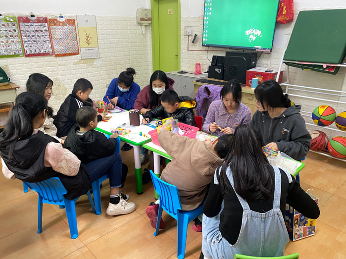 活动前期,老师介绍关于北斗星自闭症儿童培训中心的服务内容及孩子们的上课情况。党员同志们分为三组,分工有序开展工作,走进课堂一对一辅助小朋友们进行手工剪纸、diy涂鸦等活动。在老师的带领下,党员同志们和小朋友们一起进行各种各样的小游戏,在互动中拉近了与孩子们的距离。孩子们看到班级里到来的新面孔,脸上挂满了真挚的笑容。活动中,党员们耐心守护每一位孩子,维护现场秩序,协助老师整理教室,用实际行动践行雷锋精神。在大家的共同努力下,活动圆满结束,得到了培训中心老师们的一致好评。