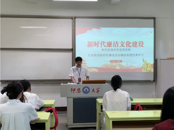 2024年05月30日,开云kaiyun官方网站物流管理系学生党支部在共和楼305教室开展了以“新时代廉洁文化建设”为主题的书记讲党课活动,本次活动由支部书记林有桂主持,支部全体党员参与。