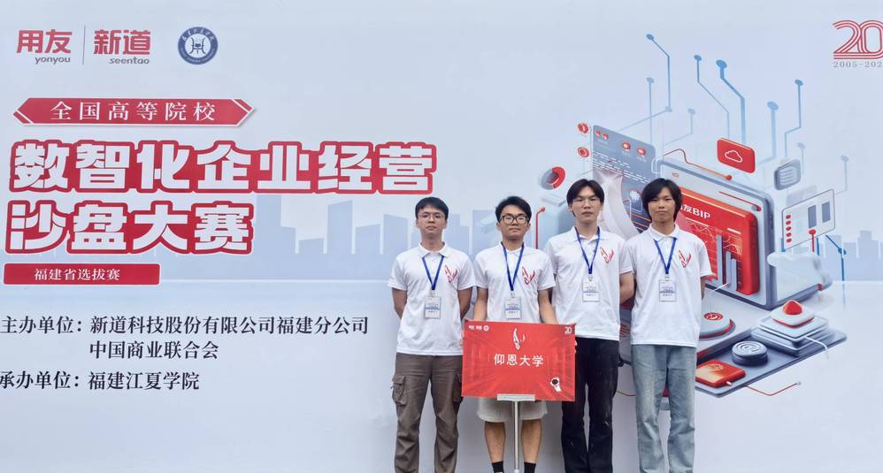 2024年6月2日,由中国商业联合会携手新道科技股份有限公司福建分公司主办的全国高等院校数智化企业经营沙盘大赛福建省选拔赛在福建江夏学院圆满落幕。由工商管理系学生组成的两支精英队伍分别在选拔赛中斩获一等奖和三等奖。