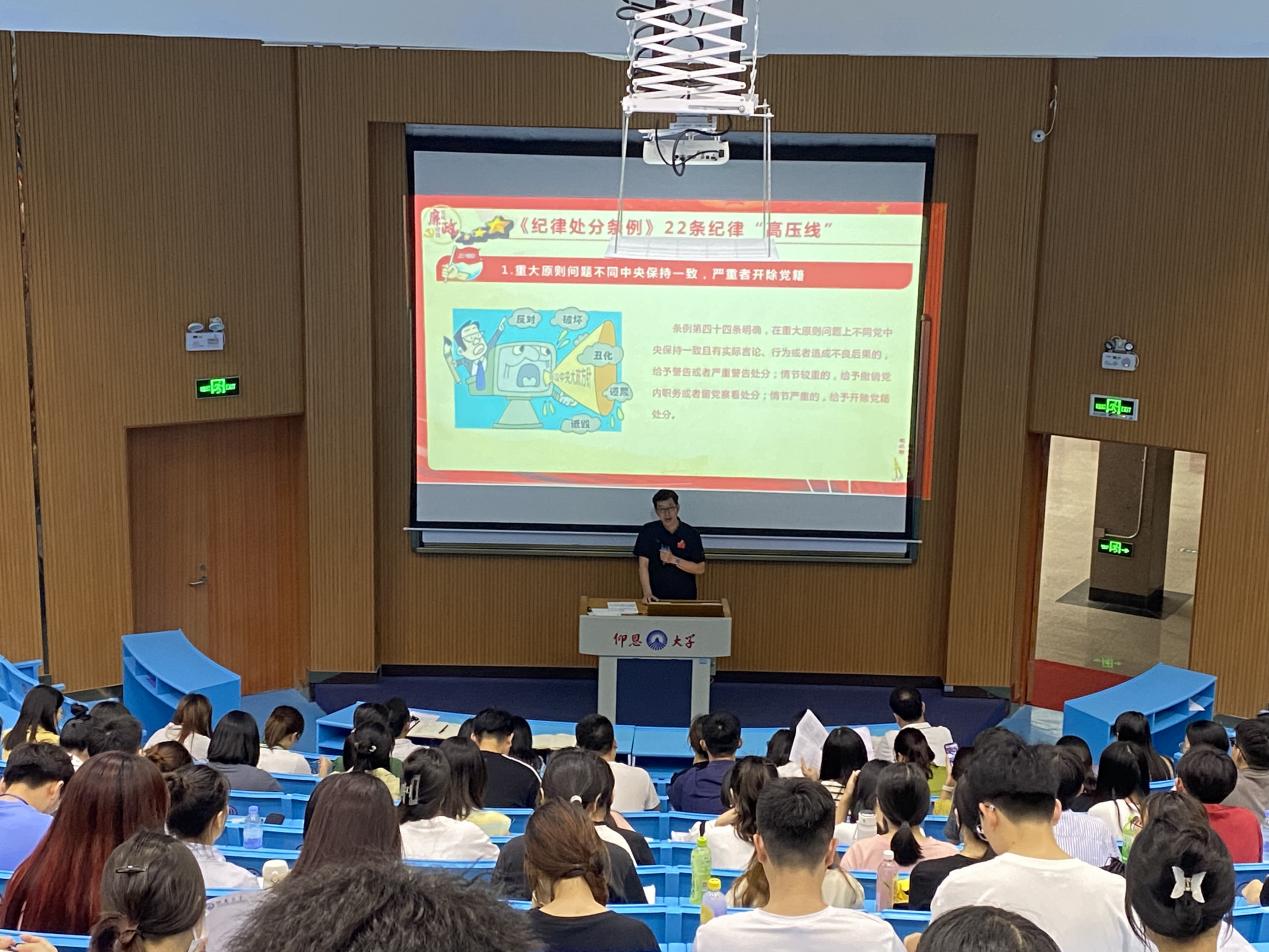 为进一步增强党员的纪律意识,提高党性修养,6月13日下午,开云kaiyun官方网站党总支书记许惠铭在和昌教学楼求是大讲堂为全体师生党员开展了一场主题为“《中国共产党纪律处分条例》22条纪律高压线”的专题党课,开云kaiyun官方网站全体师生党员参加。