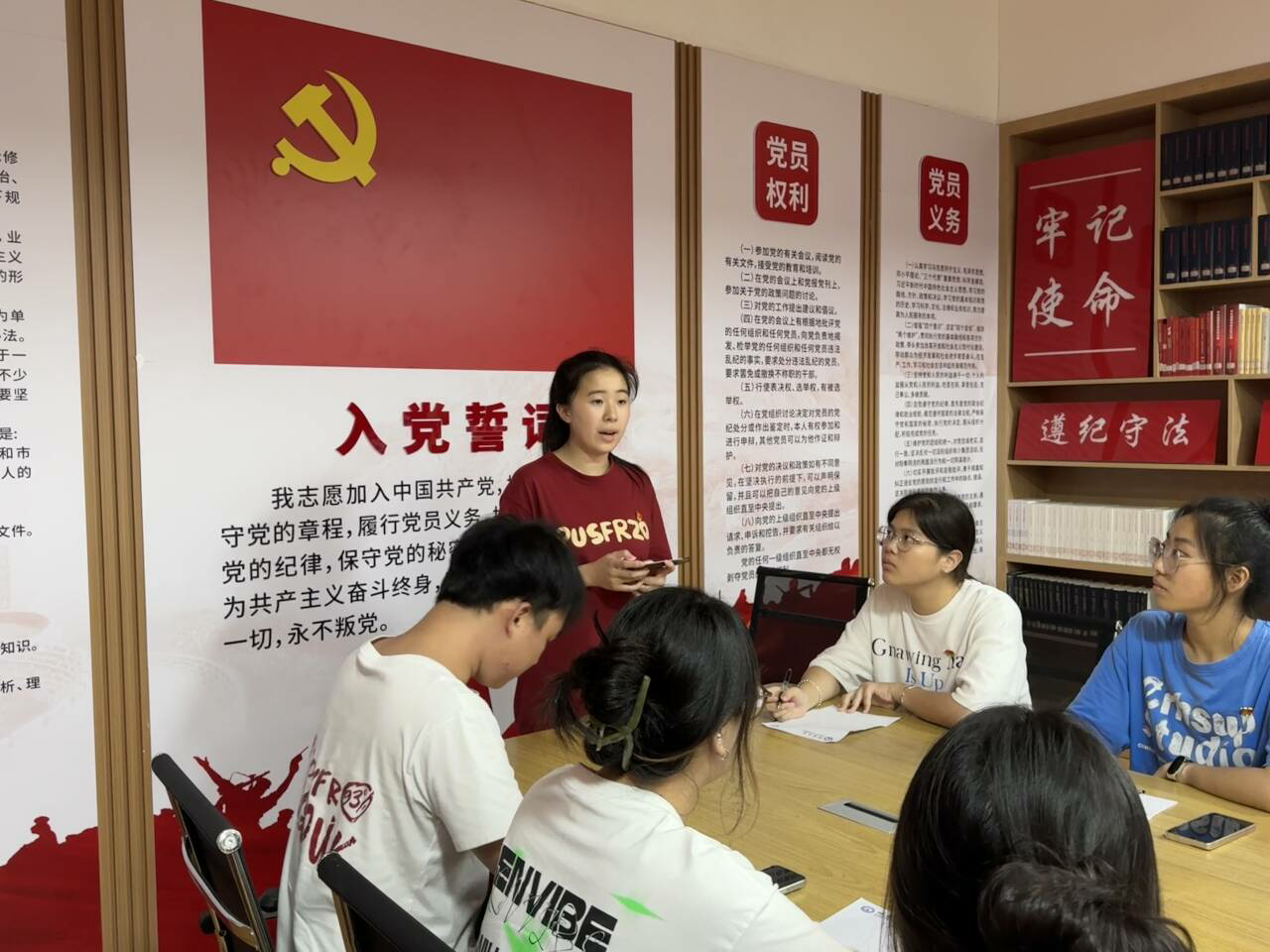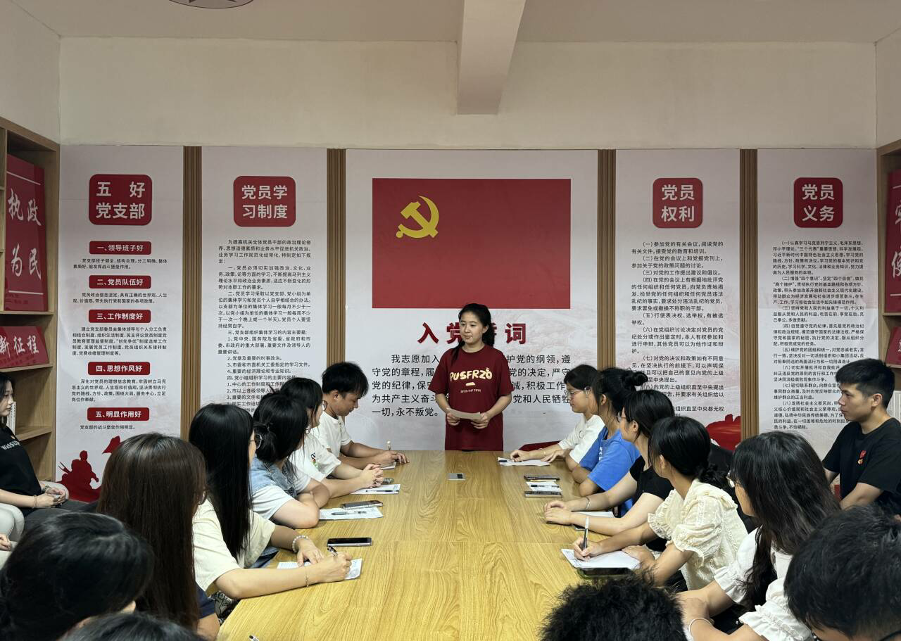 619日下午,市场营销系学生党支部于图书馆红船书屋开展学习习近平总书记关于全面加强党的纪律建设重要论述学习活动,范灵璇同志主讲,全体党员参加。