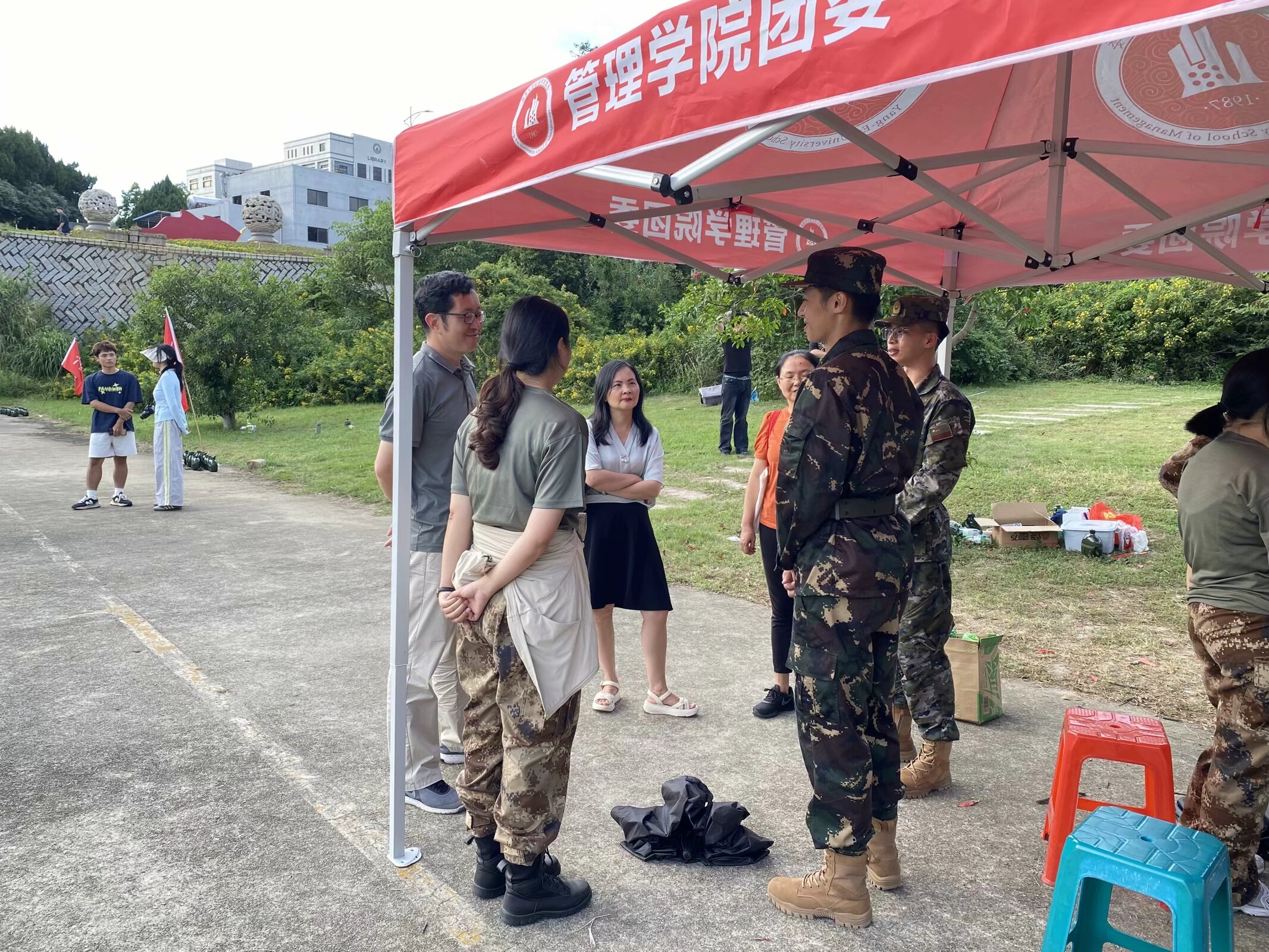 慰问活动首先由现场军训教官向学院领导简要汇报了军训的进展情况、新生们的训练成果以及后勤保障工作。许惠铭书记对军训工作给予了高度评价,并强调了军训对于培养大学生爱国主义情怀、增强国防意识、锻炼意志品质的重要意义。