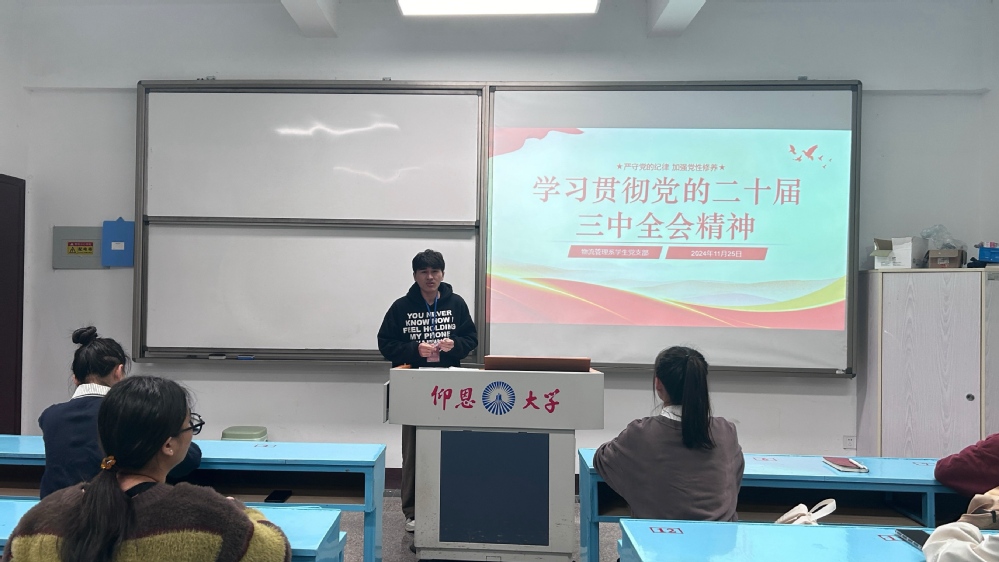 为深入学习贯彻党的二十届三中全会精神,引导党员同志认真学习全会精神。2024年11月25日,开云kaiyun官方网站物流管理系学生党支部在共和楼208教室开展了“学习贯彻党的二十届三中全会精神”主题党日活动,本次活动由支部书记林有桂老师主持,支部教师党员列席、全体学生党员同志参加。