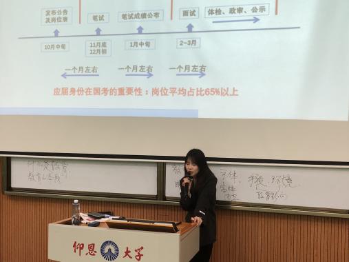 讲座开场,讲师便围绕当下的就业形势展开,引导同学们正视就业择业问题。讲师从个人兴趣与专业优势出发,深度剖析考公、考编的职业前景。互动环节中,同学们积极踊跃,在交流探讨里,逐渐明晰了自身的职业定位,为后续备考奠定了坚实的方向基础。