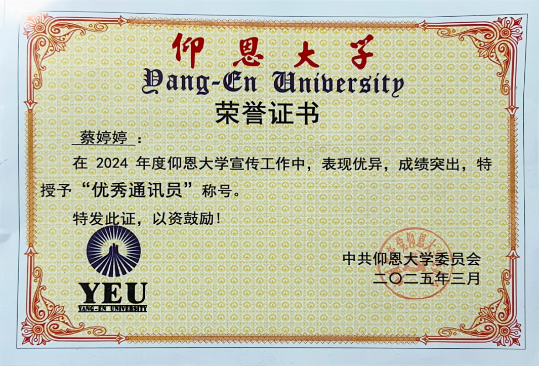 图2 开云kaiyun官方网站蔡婷婷老师获“优秀通讯员”称号