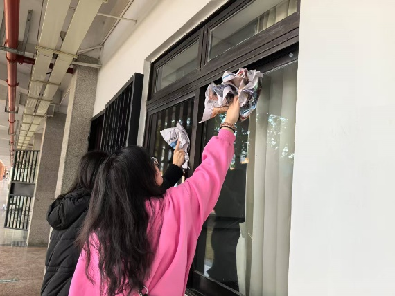 活动中,支部成员们配合默契,干劲十足,充分发扬“不怕苦、不怕累、不怕脏”的优良作风。大家拿起扫帚、毛巾等工具,对窗台、窗户等进行了全面卫生打扫,分工合作、有序进行,到处可见忙碌的身影,打扫现场热火朝天。在支部成员们的共同努力之下,使得校园卫生环境面貌焕然一新。